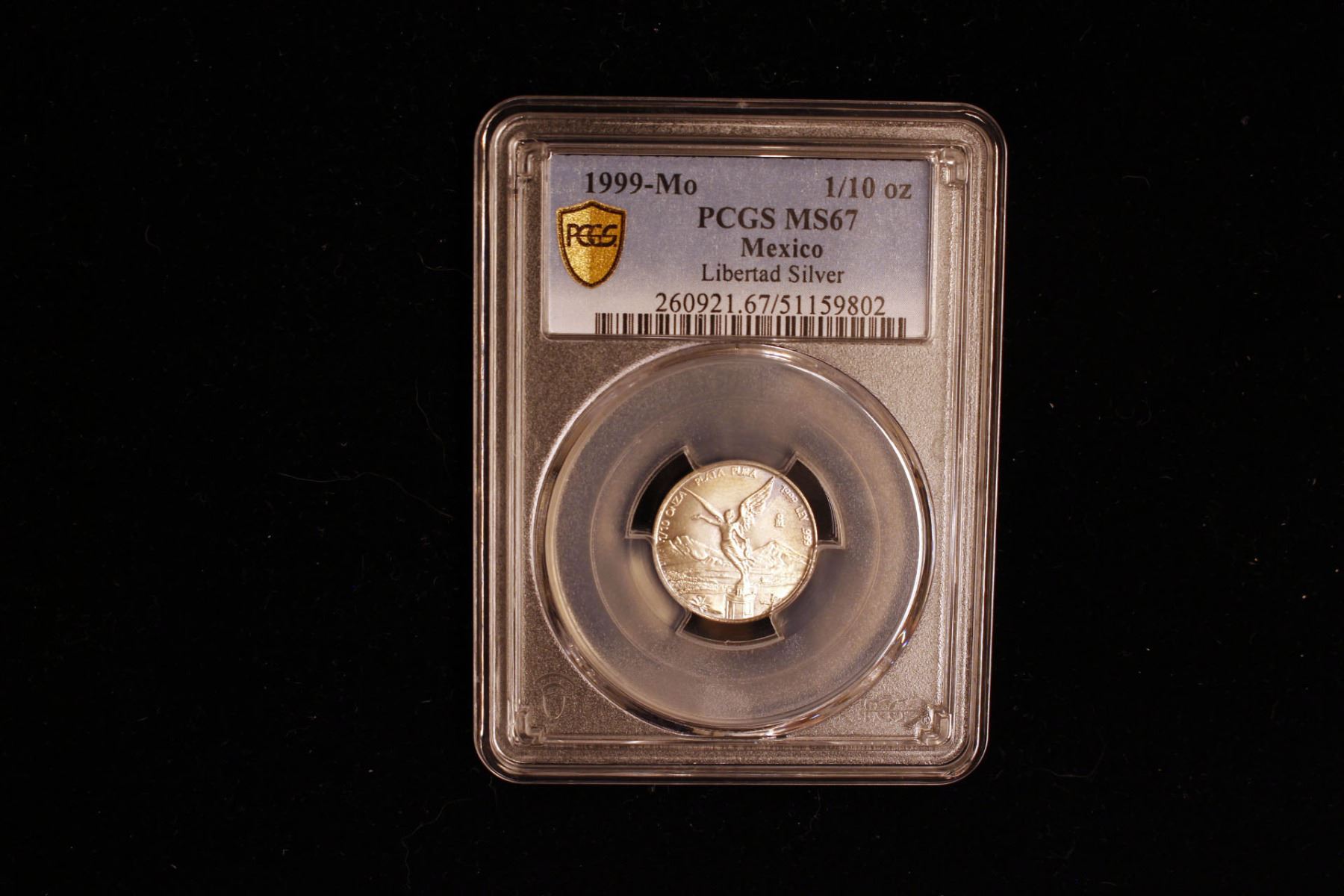 MEXICO: Estados Unidos, AR 1/10 onza, 1999-Mo, KM-610, Libertad, an incredible example, PCGS graded MS67.