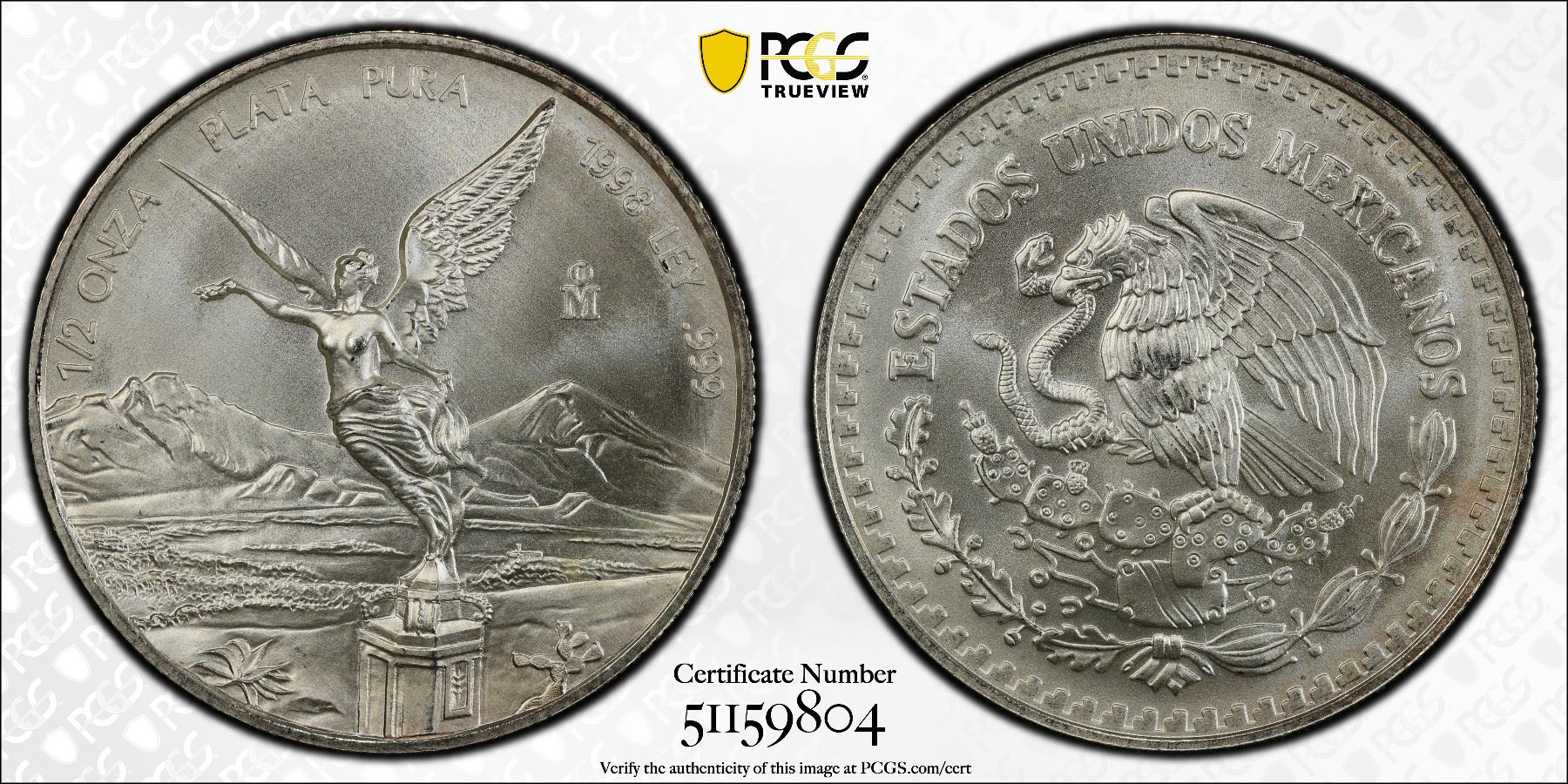 MEXICO: Estados Unidos, AR 1/2 onza, 1998-Mo, KM-612, Libertad, a spectacular example, PCGS graded MS68.