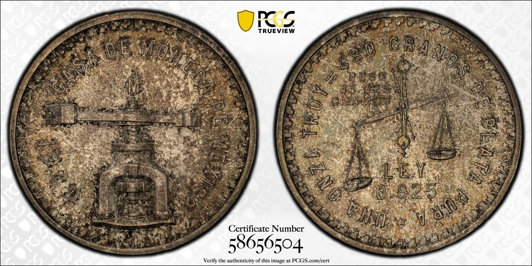 MEXICO: Estados Unidos, AR onza, 1949-Mo, PCGS MS65