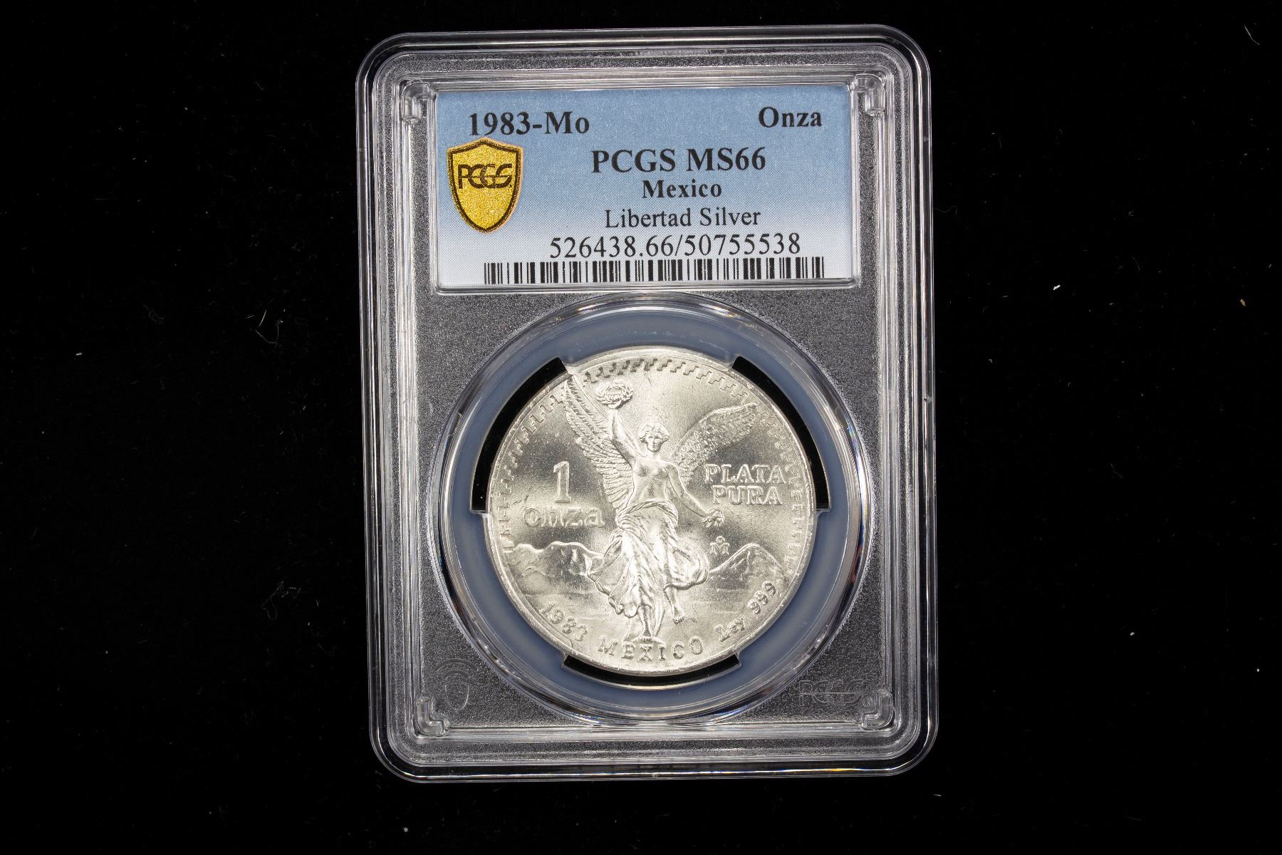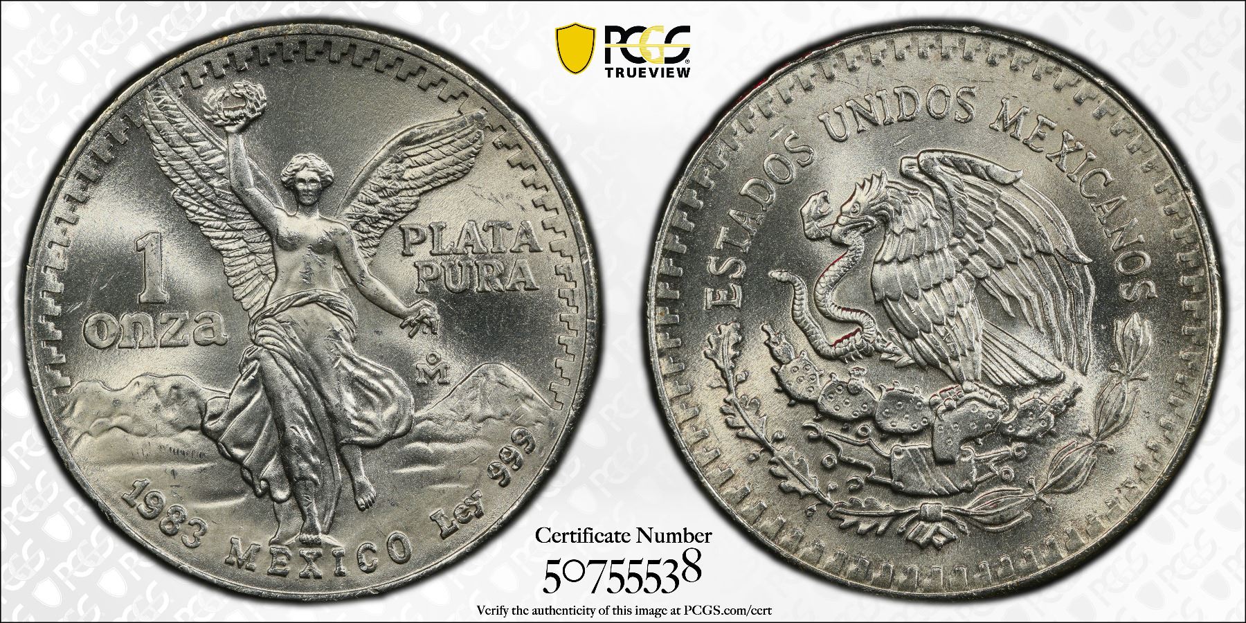 MEXICO: Estados Unidos, AR onza, 1983-Mo, KM-494, Libertad, a fantastic reflective mint state example! PCGS graded MS66.