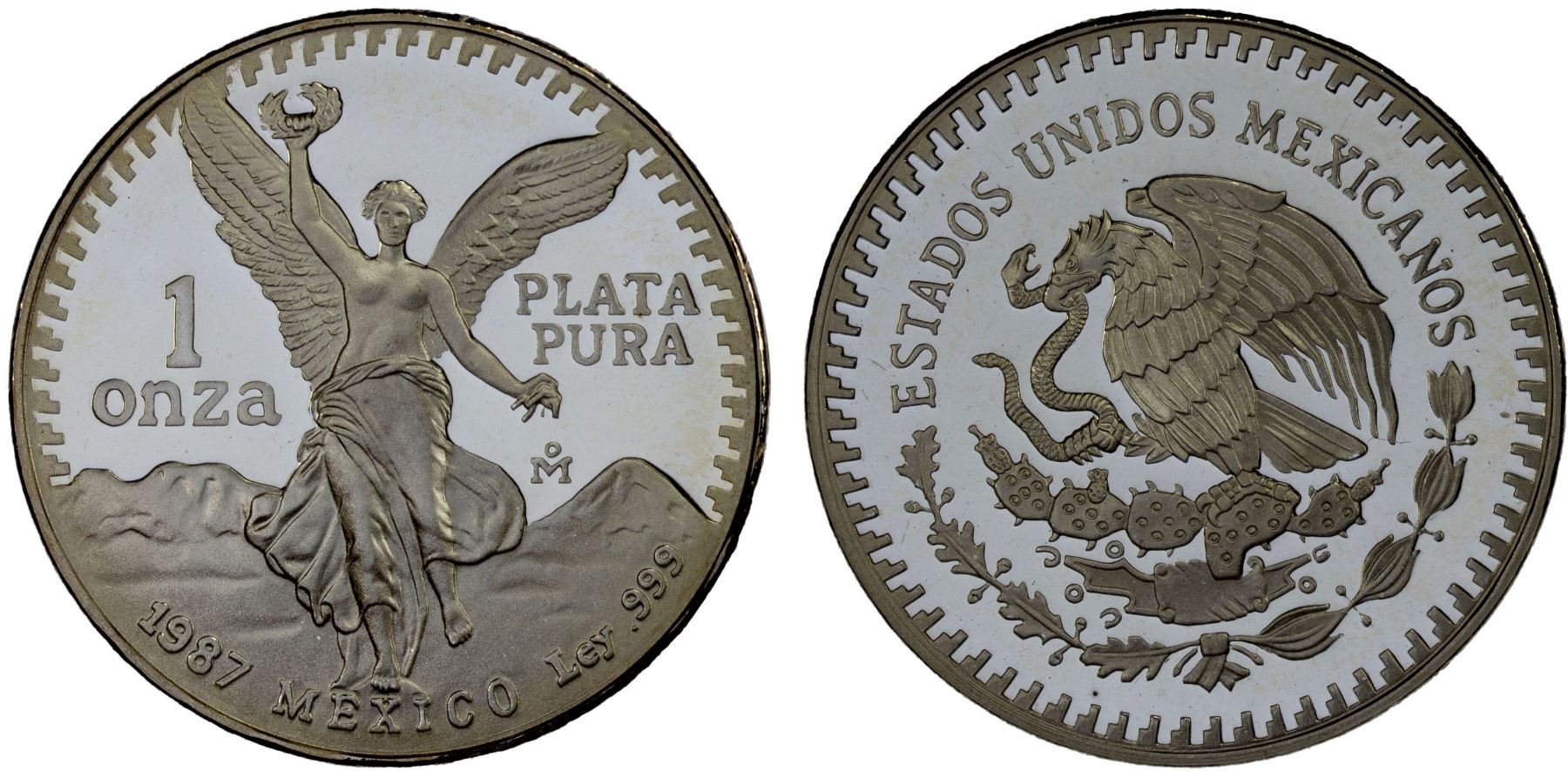 MEXICO: Estados Unidos, AR onza, 1987-Mo, KM-494.1, Libertad proof, classic Winged Victory design, in original case with worn slipcover and COA, Choice Proof.