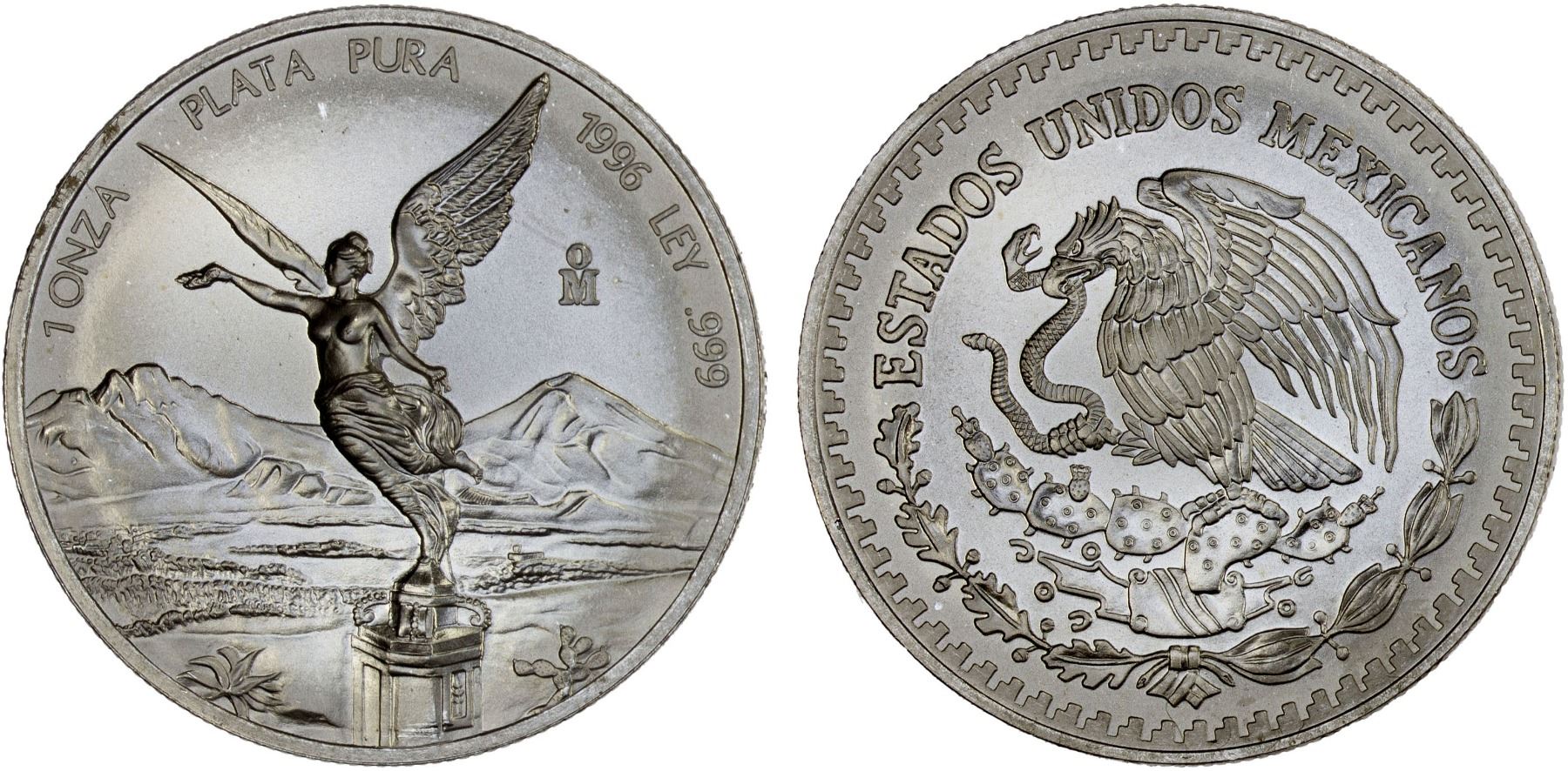 MEXICO: Estados Unidos, AR onza, 1996-Mo, KM-613, classic Winged Victory design, Gem Unc.