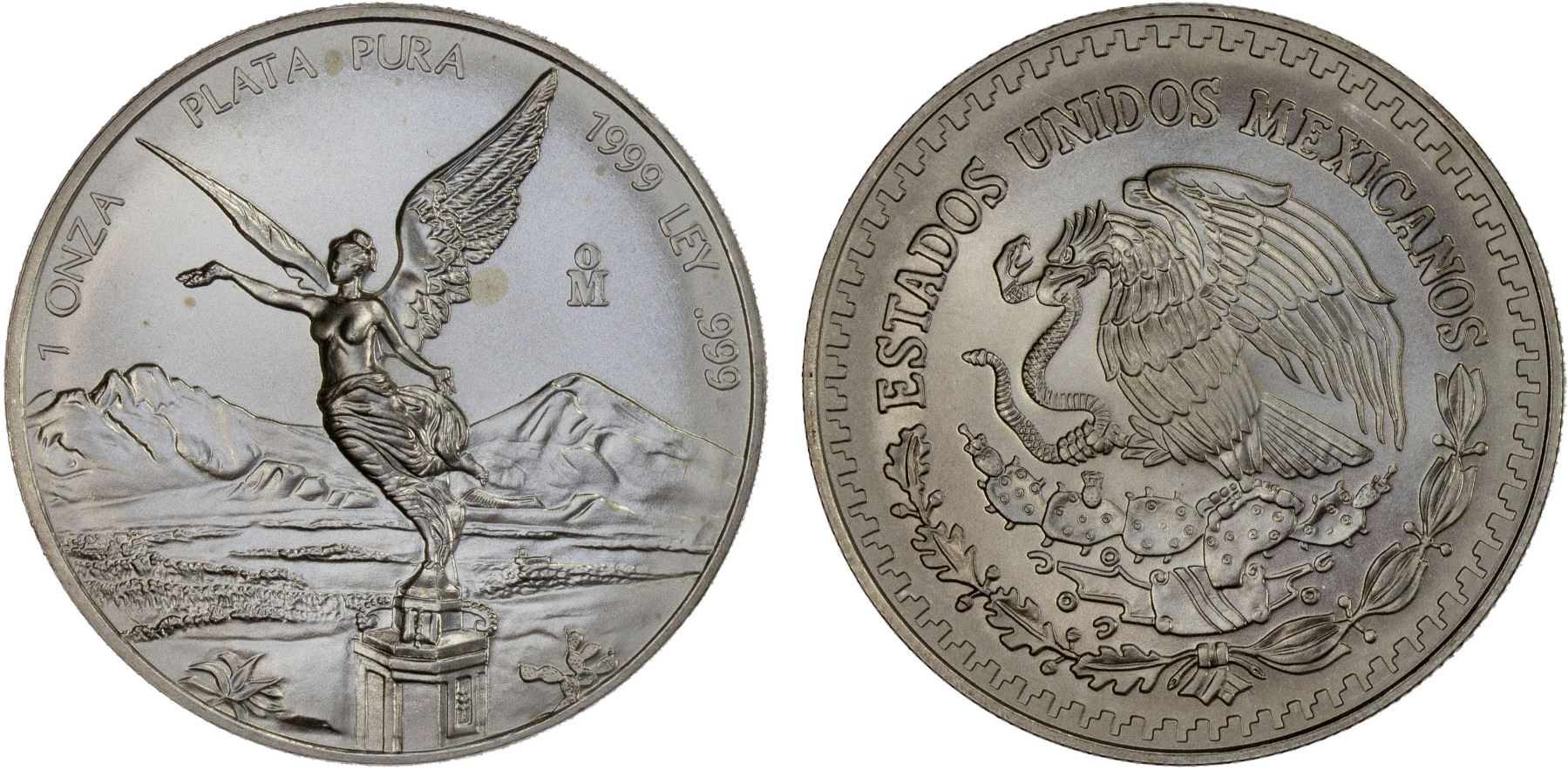 MEXICO: Estados Unidos, AR onza, 1999-Mo, KM-613, classic Winged Victory design, Gem Unc.
