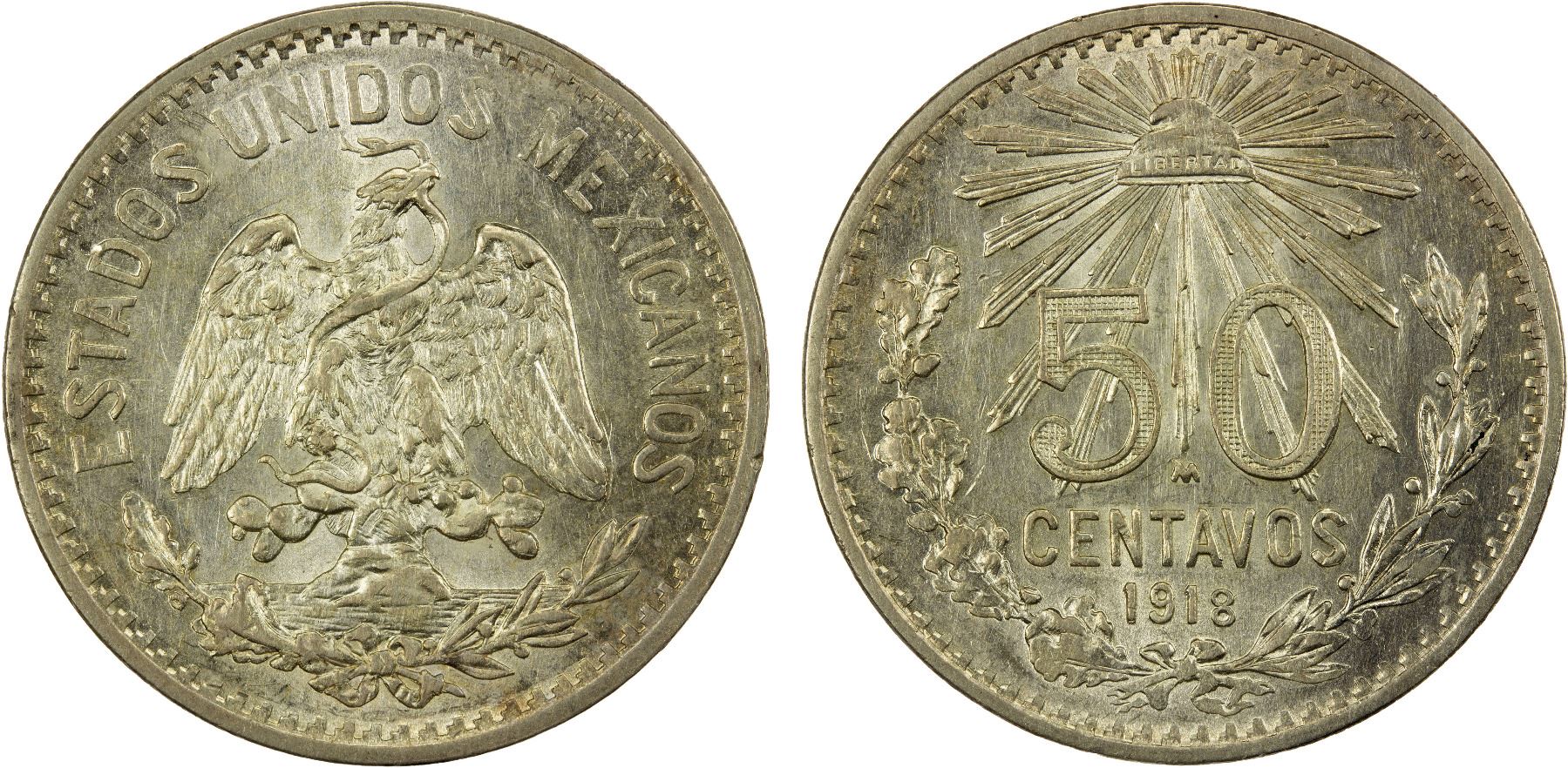 MEXICO: Estados Unidos, AR peso, 1918, KM-445, very lightly cleaned, lustrous, better date, AU.