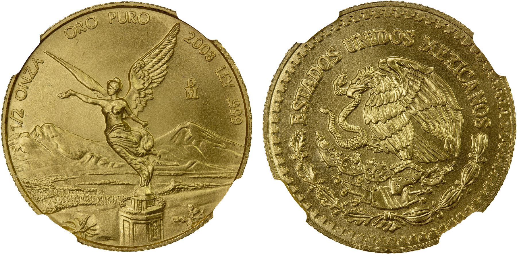 MEXICO: Estados Unidos, AV 1/2 onza, 2008, KM-612, NGC graded MS68.