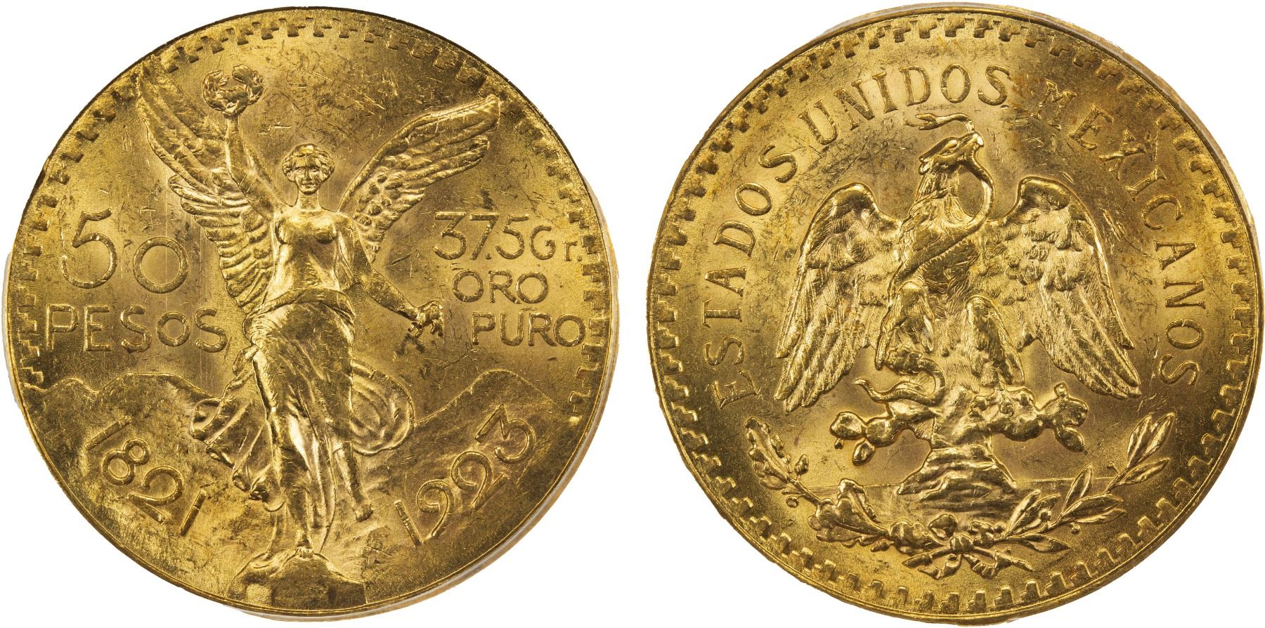 MEXICO: Estados Unidos, AV 50 pesos, 1923, PCGS MS63