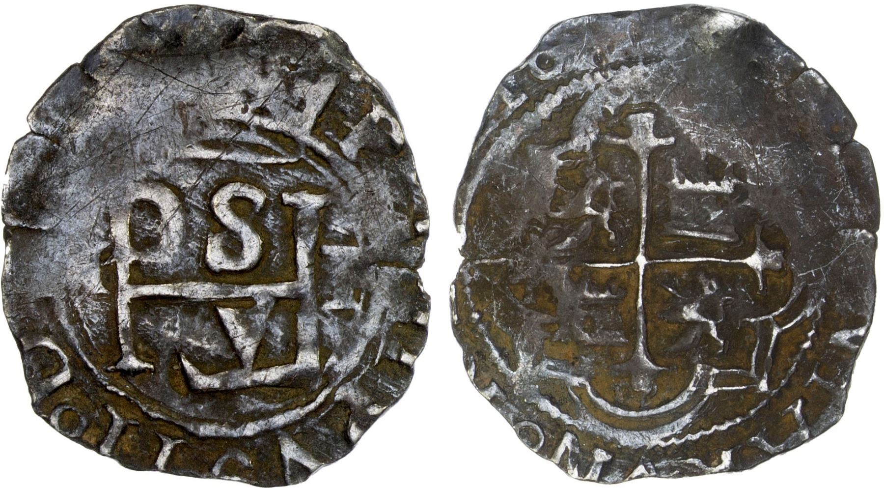 MEXICO: Felipe II, 1556-1598, AR 1/2 real (1.65g), ND (1589-98)-Mo, KM-8, assayer F/O, cob issue, lions and castles reversed, deeply toned, light reverse oxidation, nearly full cross, rare, Fine.