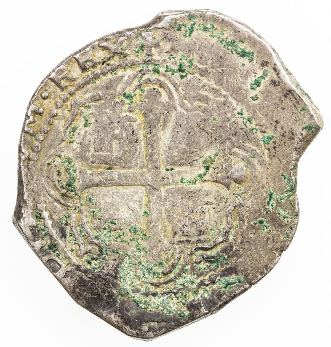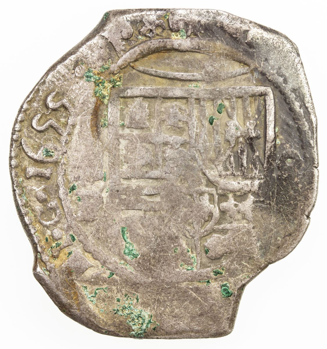 MEXICO: Felipe IV, 1621-1665, AR 8 reales (26.03g), 1655-Mo, KM-45, assayer P, cob coinage, some verdigris, but full cross and date, oblong flan, F-VF.