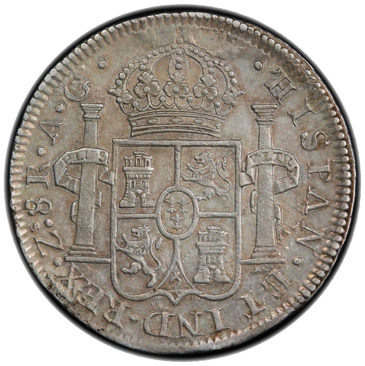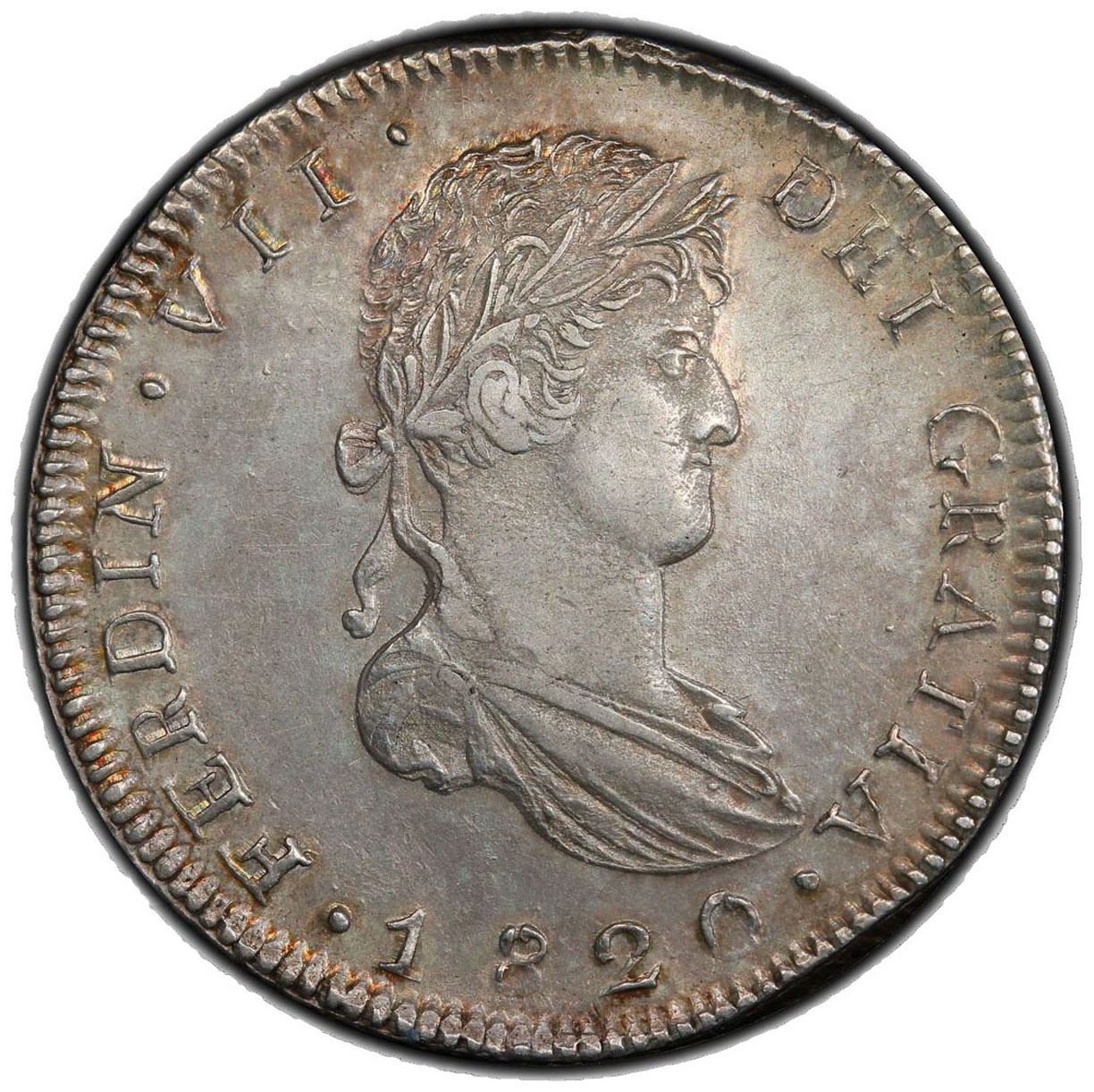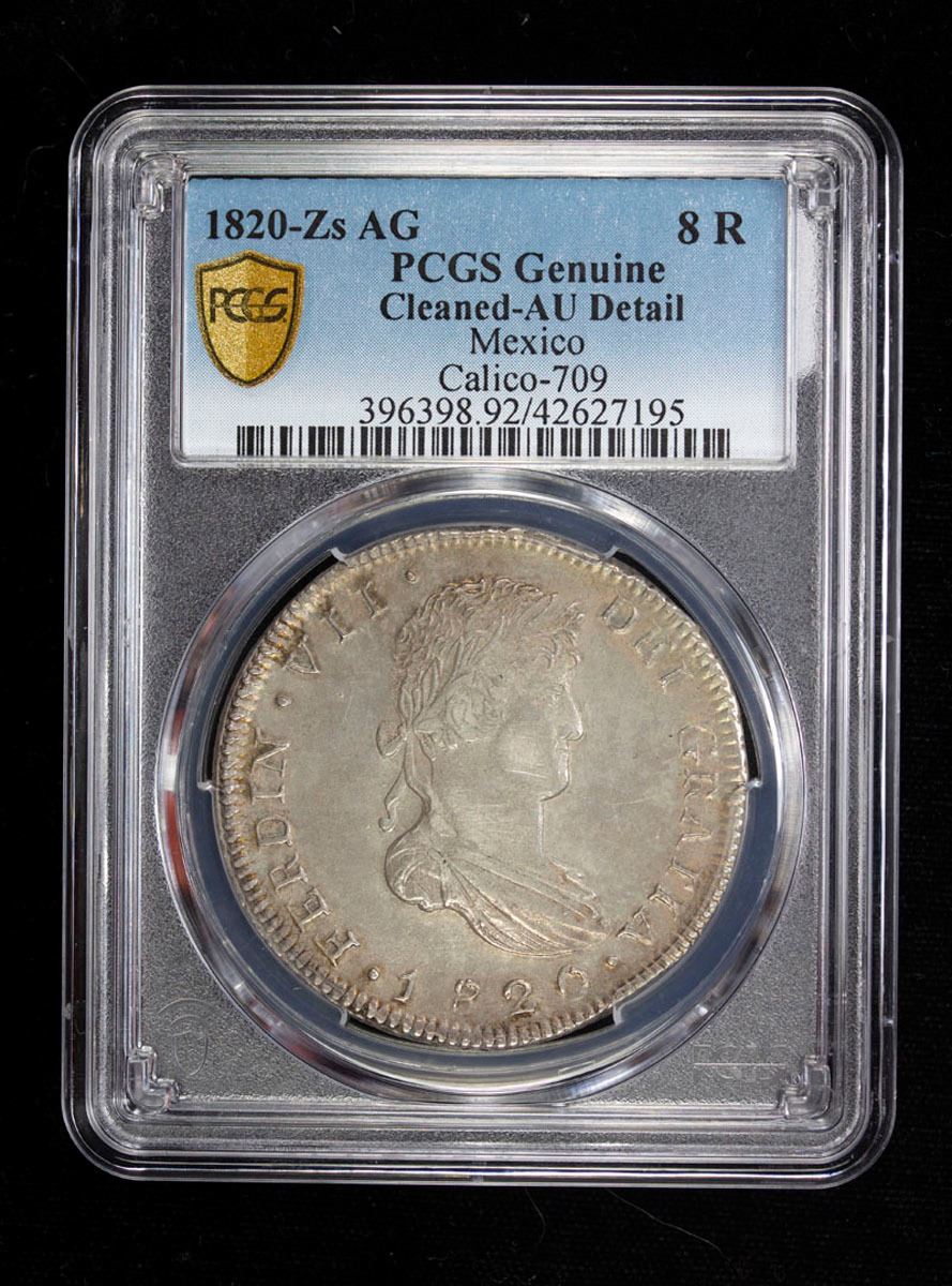 MEXICO: Fernando VII, 1808-1821, AR 8 reales, 1820-Zs, KM-111.5, Calico-709, Royalist issue, assayer AG, cleaned, PCGS graded AU details.