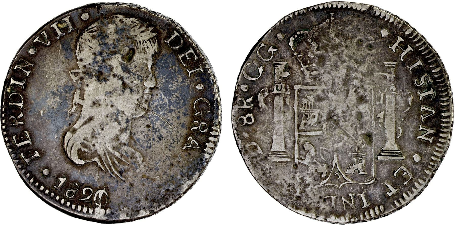 MEXICO: Fernando VII, 1808-1821, AR 8 reales, Durango, 1820-D, KM-111.2, assayer CG, weakly and crudely struck as usual, some unevenness on the flan (most likely from the mint), a couple scratches near the chin on the portrait, VG.