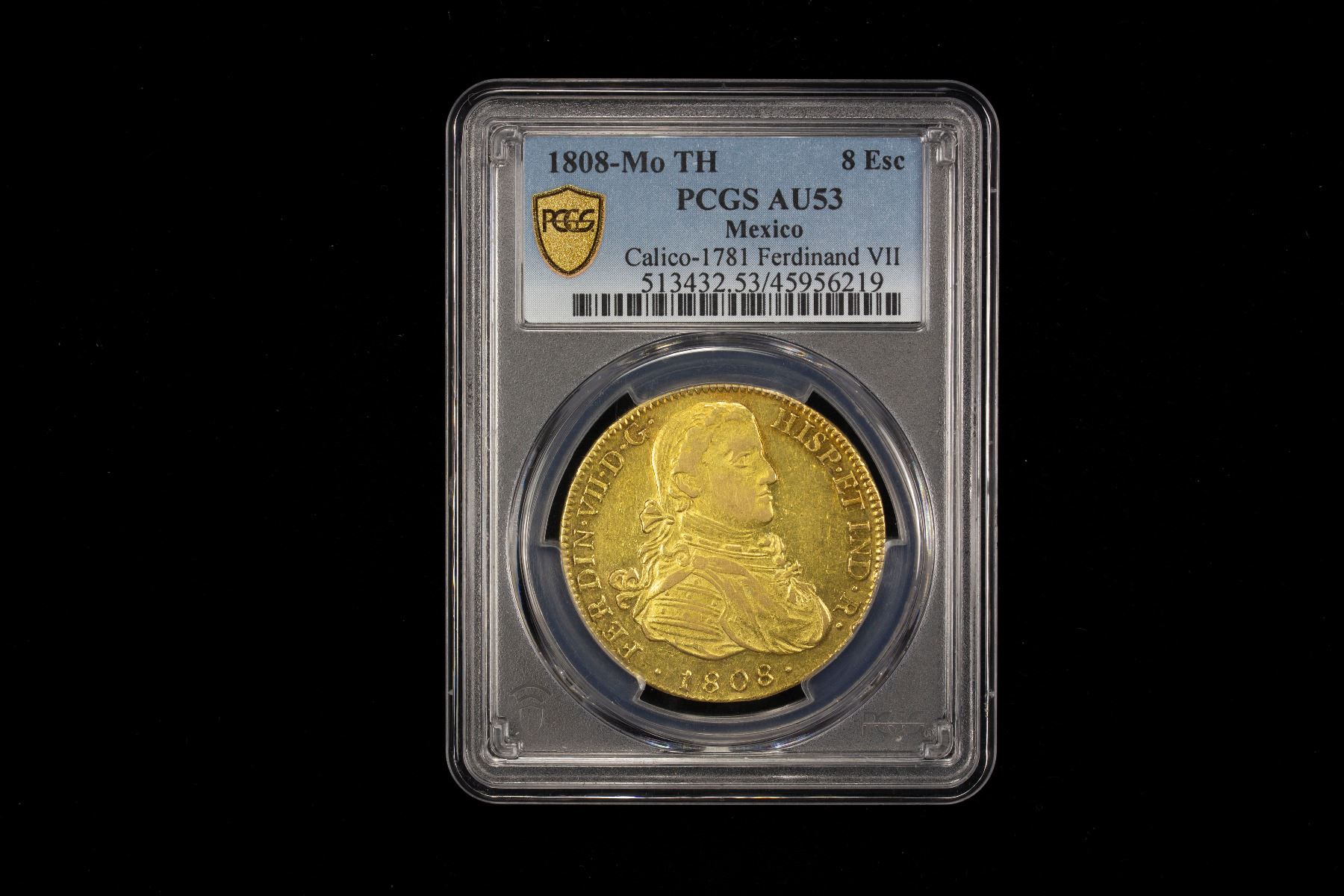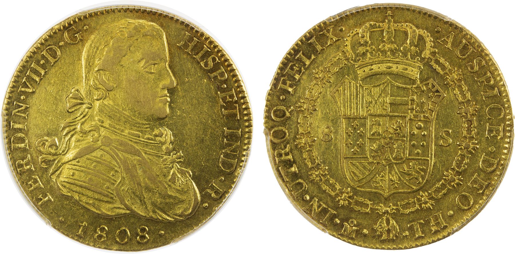 MEXICO: Fernando VII, 1808-1821, AV 8 escudos, 1808-Mo, KM-160, Cal-1781, assayer TH, PCGS graded AU53.