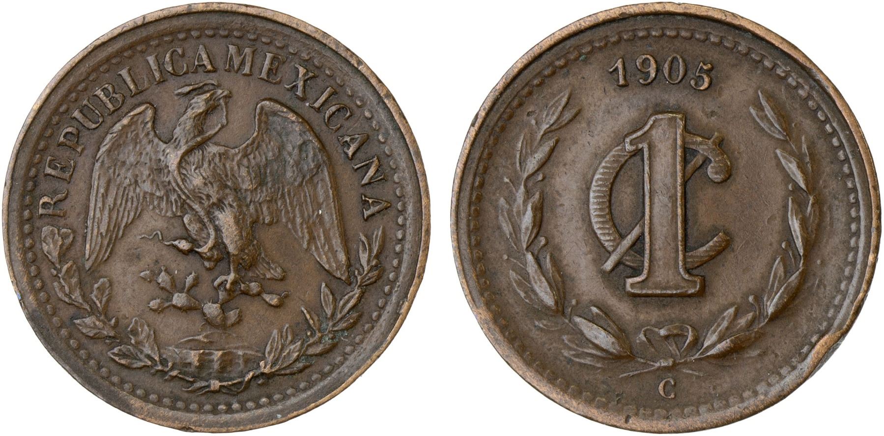 MEXICO: Republic, AE centavo, 1905-C, KM-394, reverse rim nick, bold strike, key date/mintmark, VF.