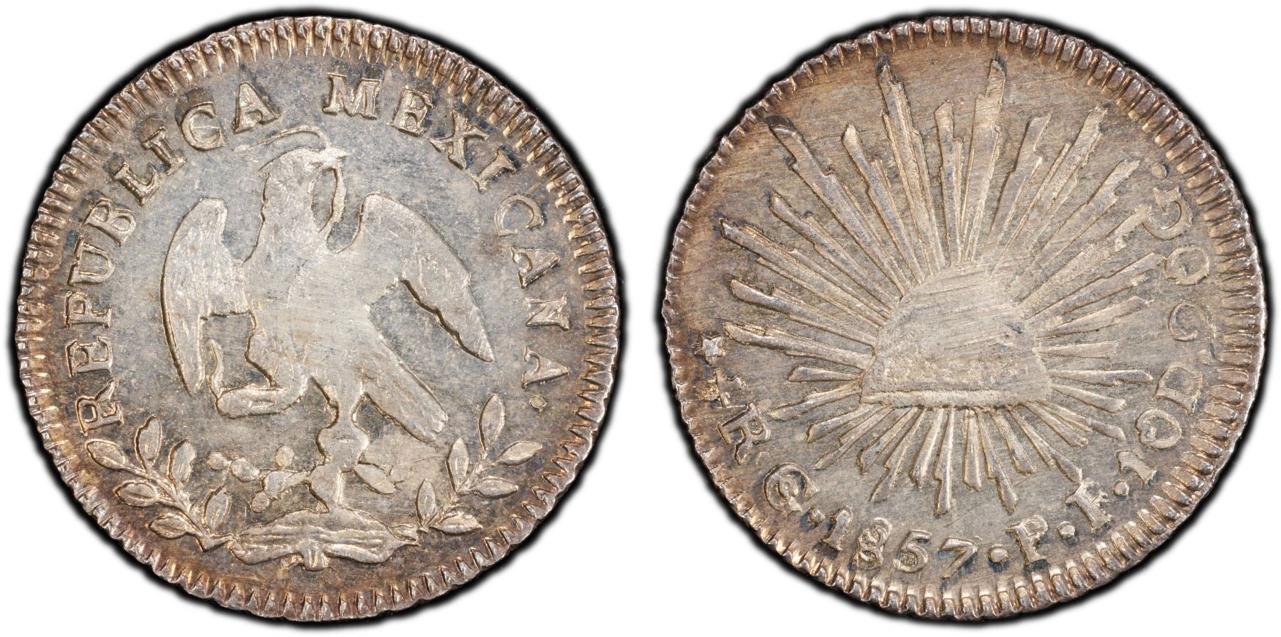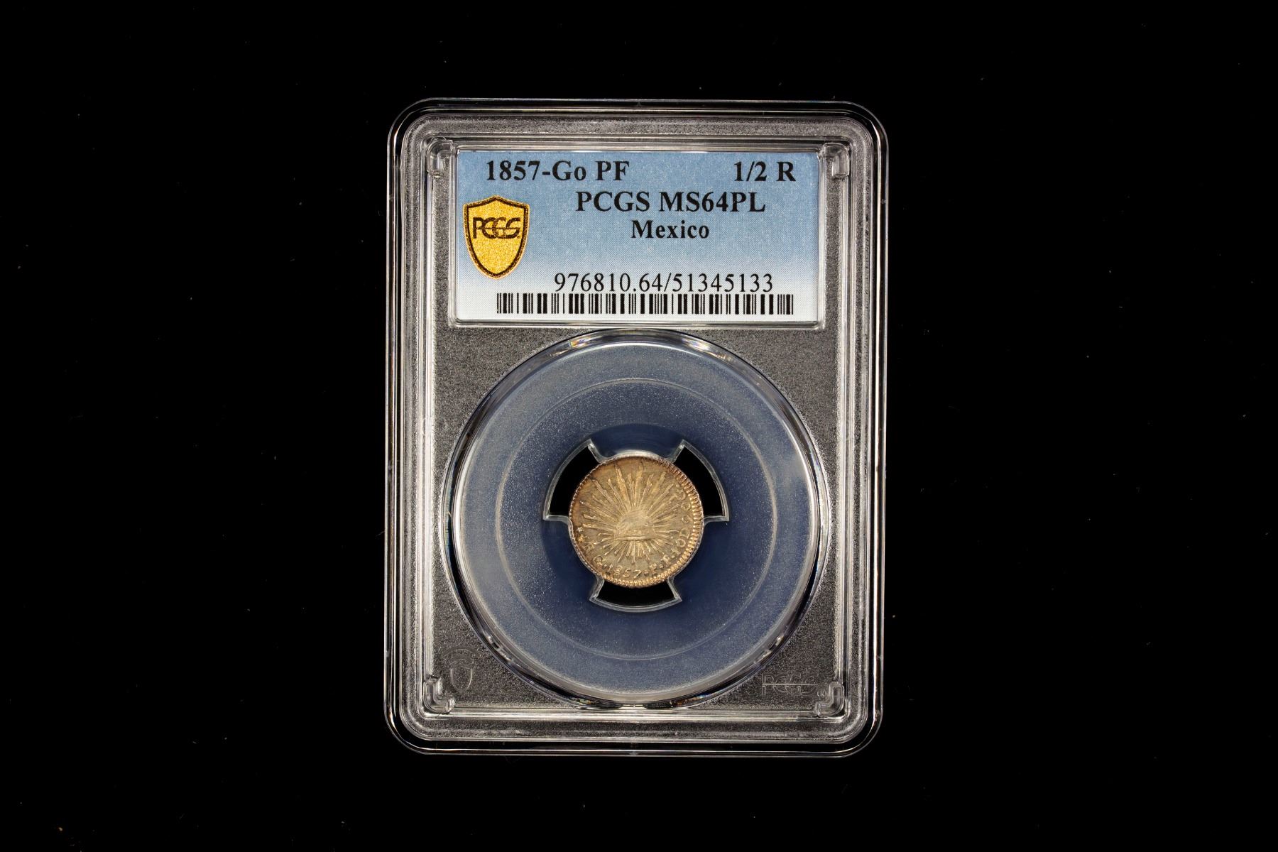 MEXICO: Republic, AR 1/2 real, 1857-Go, KM-370.7, assayer PF, a wonderful mint state example and prooflike, PCGS graded MS64 PL.
