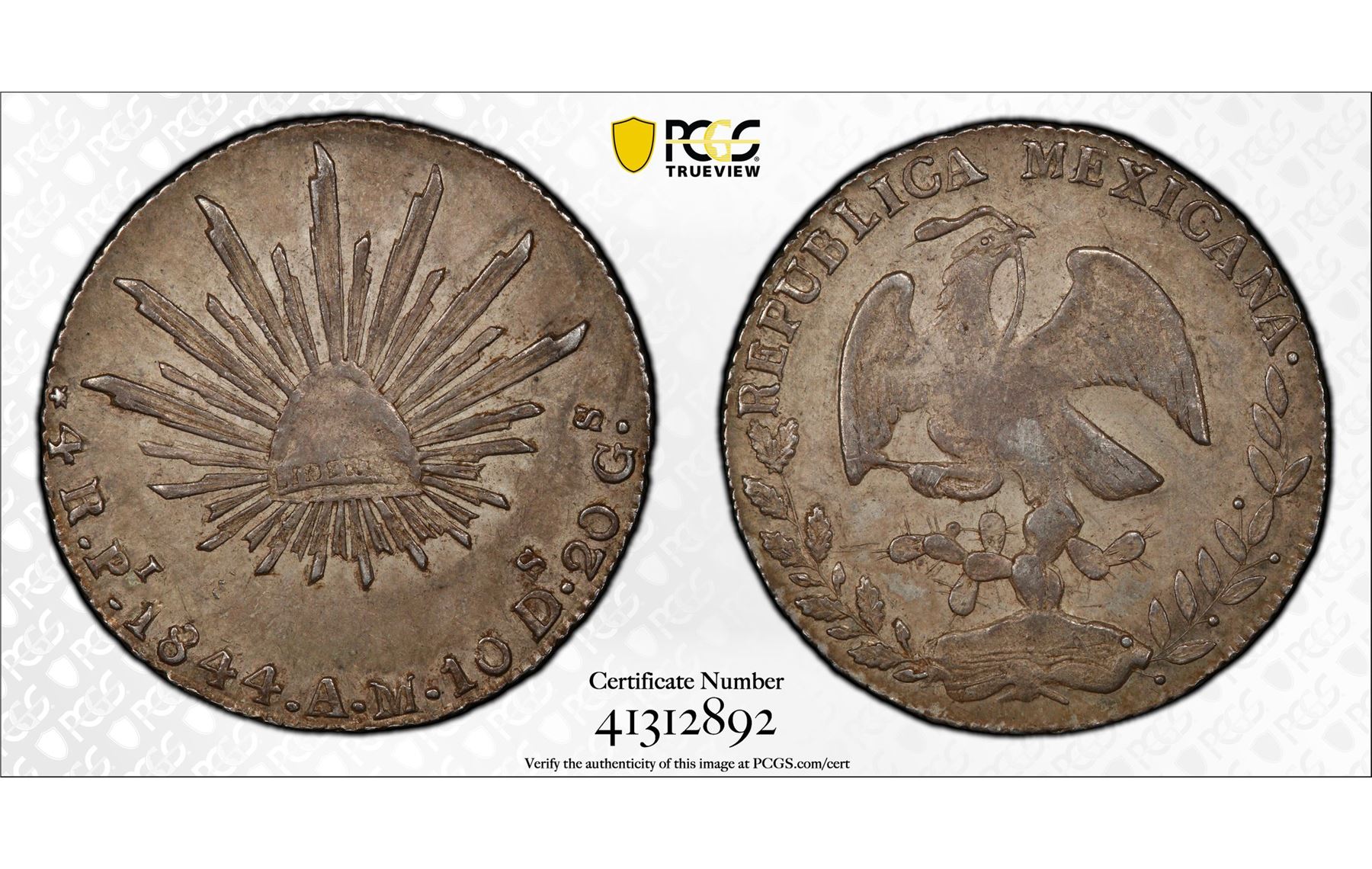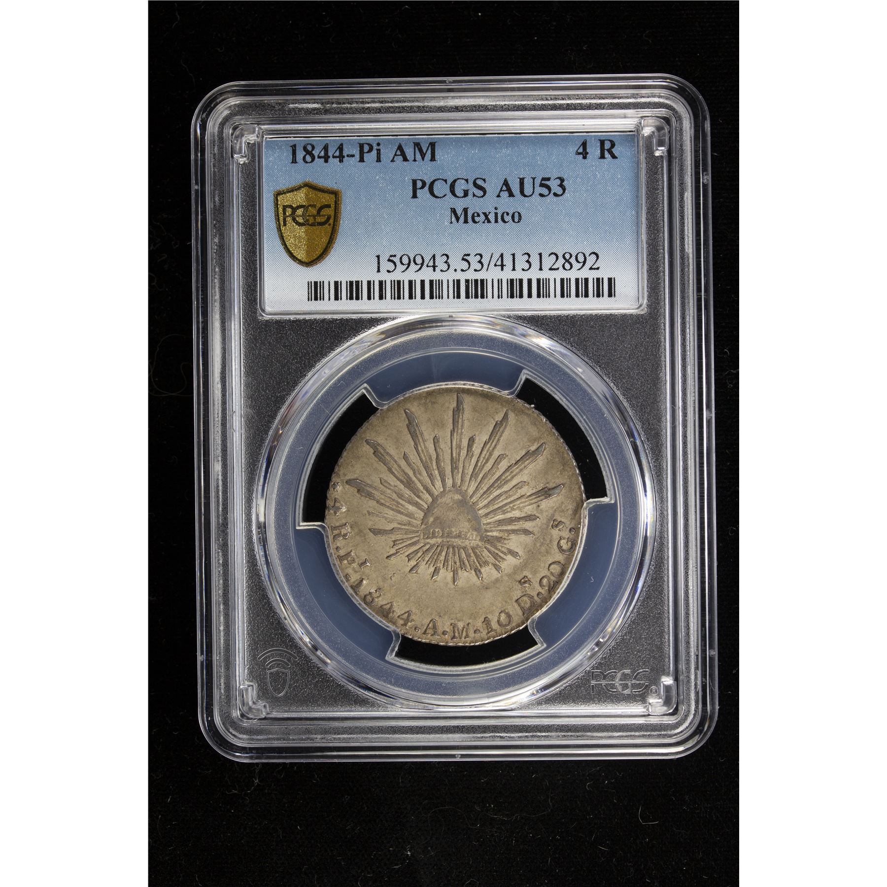 MEXICO: Republic, AR 4 reales, 1844-Pi, KM-375.8, assayer AM, PCGS graded AU53