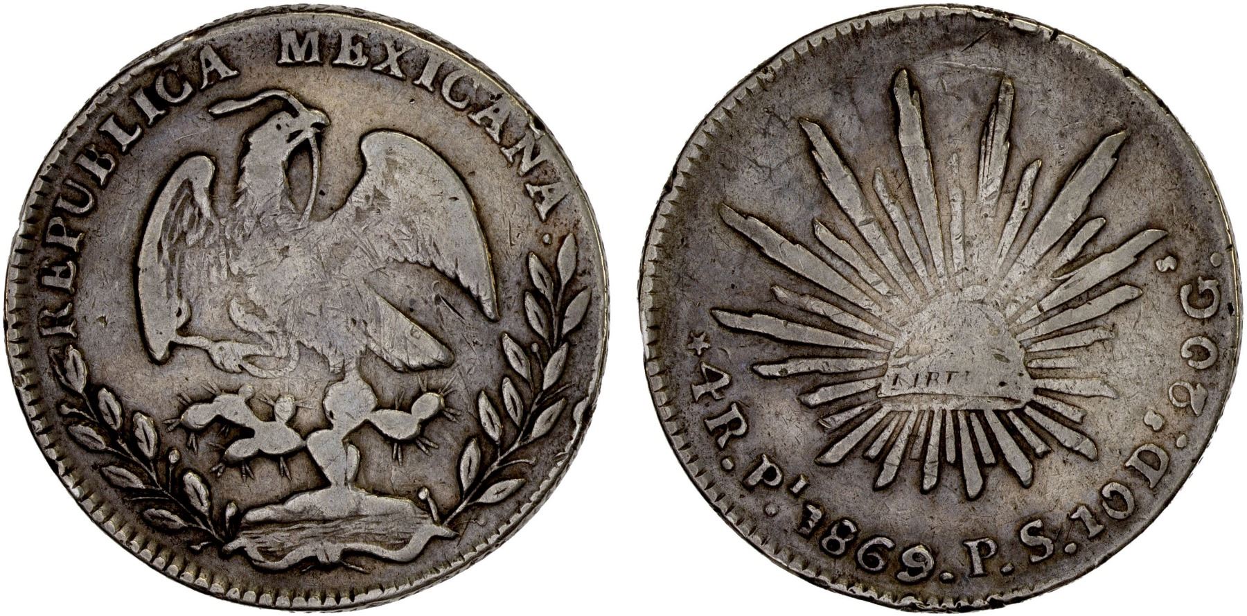 MEXICO: Republic, AR 4 reales, 1869/8=Pi, Fine