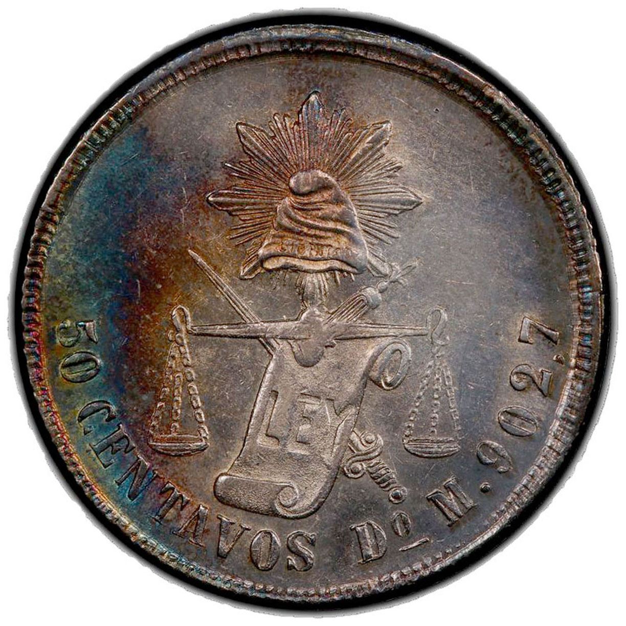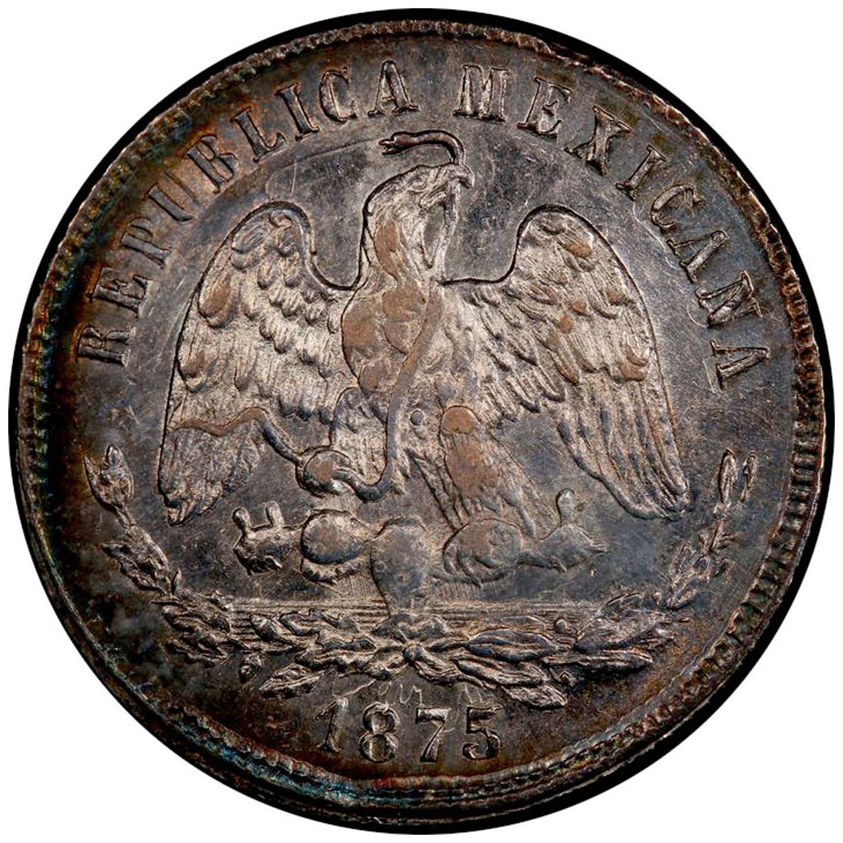 MEXICO: Republic, AR 50 centavos, 1875-Do, KM-407.3, assayer M, an attractive lightly toned mint state example! PCGS graded MS61. A very rare quality for this date and mint.
