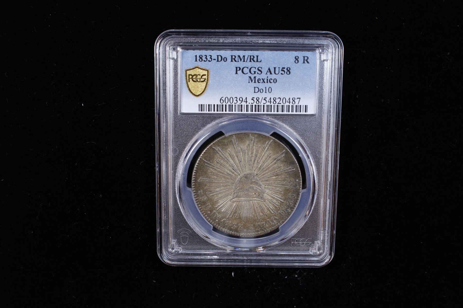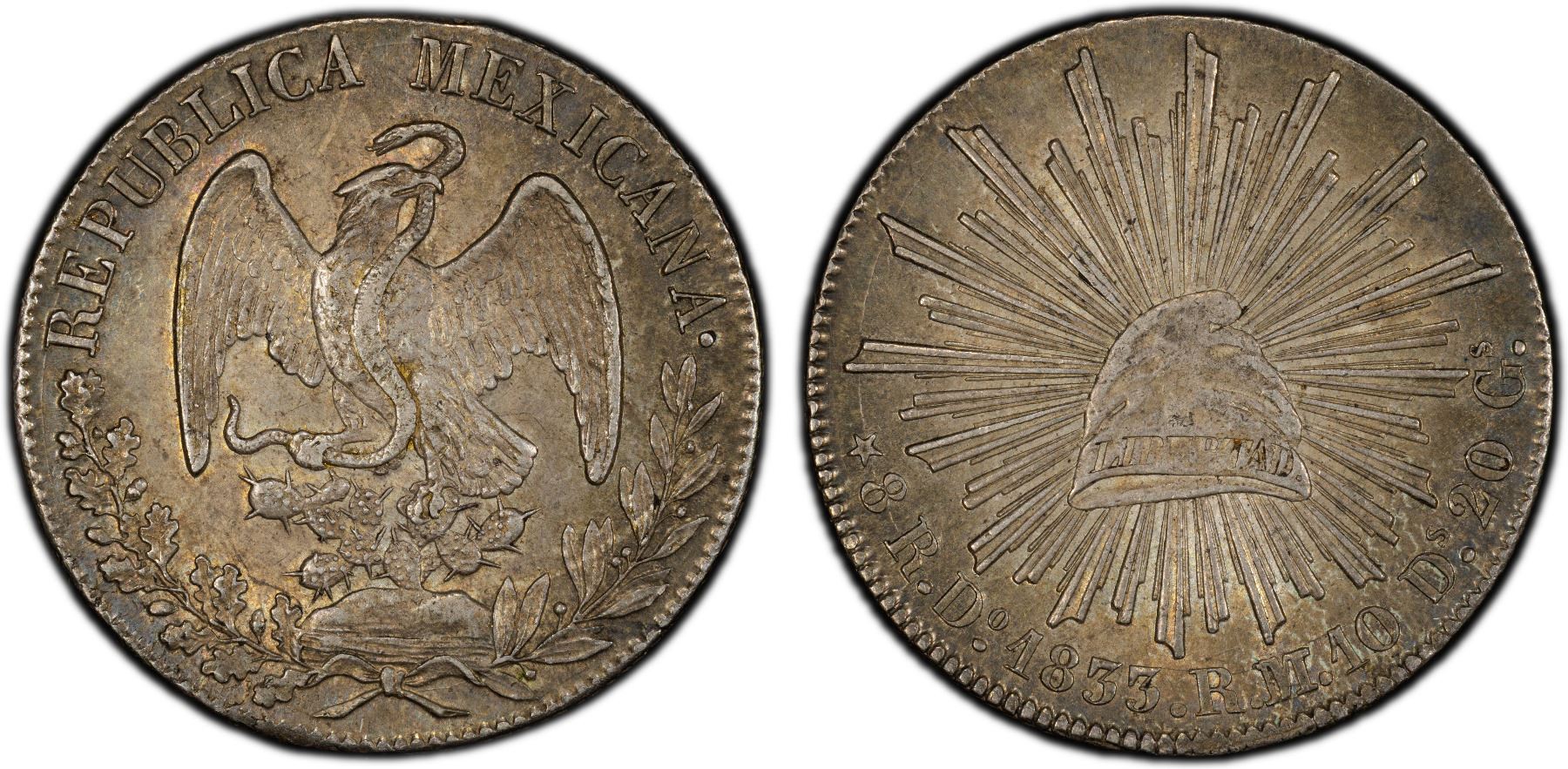 MEXICO: Republic, AR 8 reales, 1833-Do, KM-377.4, DP-Do10, assayer RM/RL, lovely original toning, PCGS graded AU58.