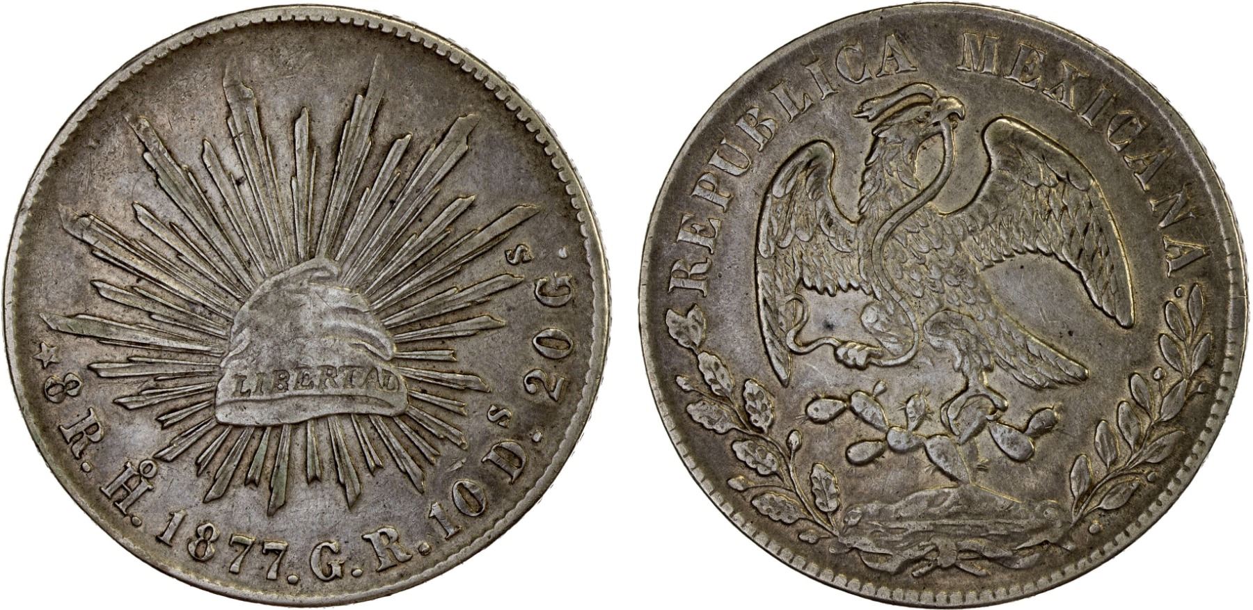 MEXICO: Republic, AR 8 reales, 1877-Ho, KM-377.9, assayer GR, very scarce assayer, Choice VF.