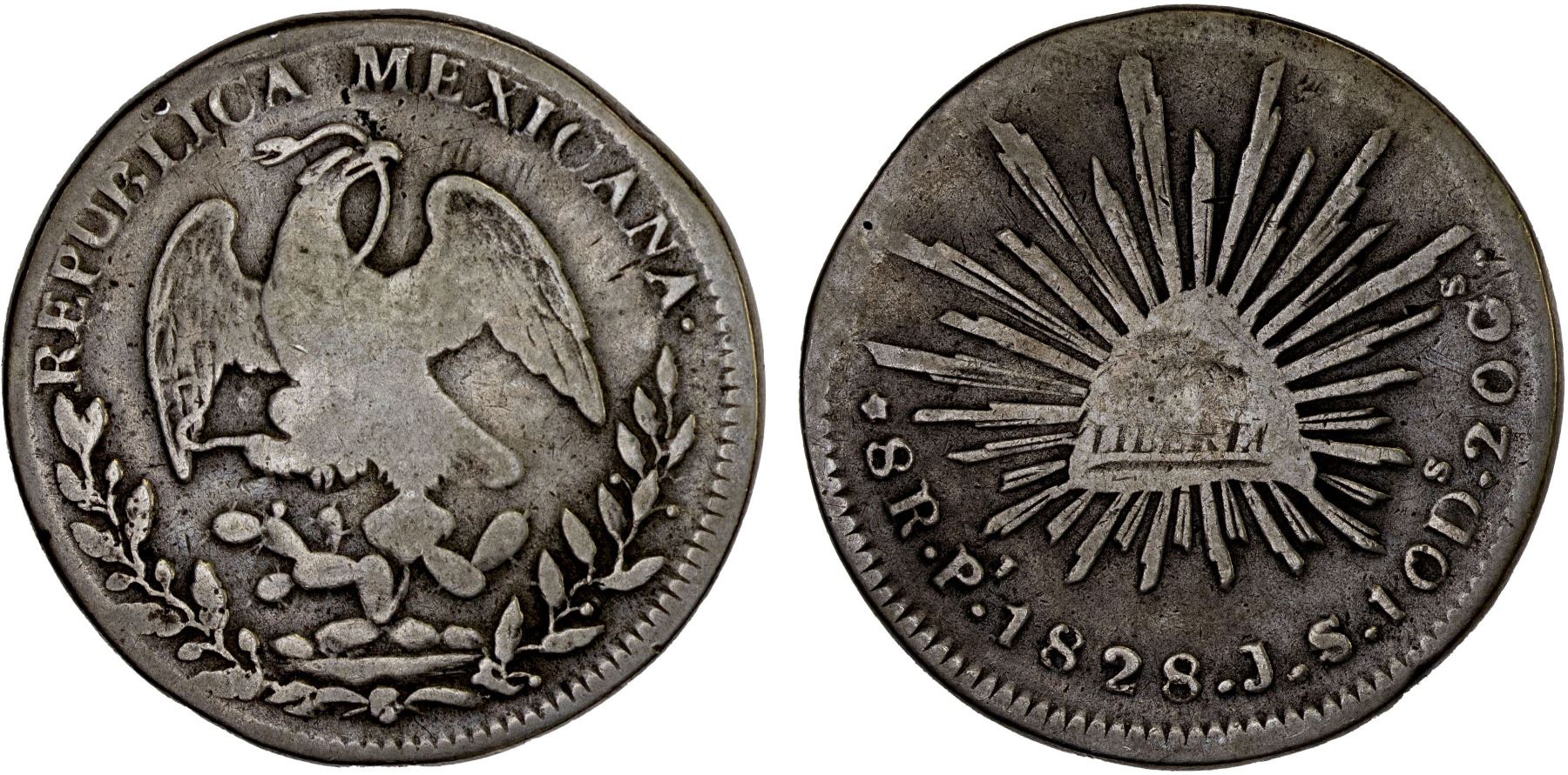 MEXICO: Republic, AR 8 reales (25.96g), San Luis Potosi, 1828-Pi, KM-377.12, D&P-Pi03, assayer JS, very scarce to rare date/assayer, Good to VG, ex Bob "Swamperbob" Gurney Collection.