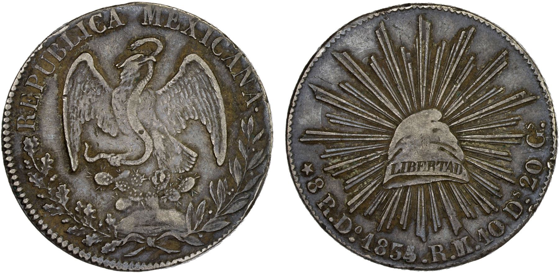 MEXICO: Republic, AR 8 reales (26.23g), 1835/4-Do, KM-377.4, D&P-Do12, assayer RM/L, overdate certain, crested raptor, light residue, a few small rim nicks, small reverse scratch, scarce variety, VF, ex Bob "Swamperbob" Gurney Collection.