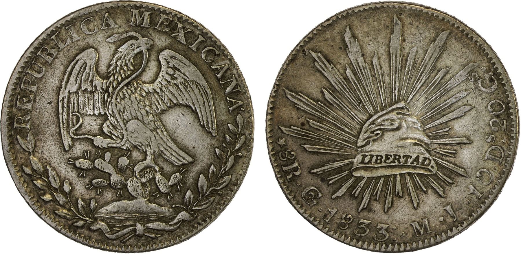 MEXICO: Republic, AR 8 reales (26.26g), 1833-Go, KM-377.8, D&P-Go14, assayer MJ, three dots after date, straight J, irregular edge, some contact marks, Choice VF, ex Bob "Swamperbob" Gurney Collection.