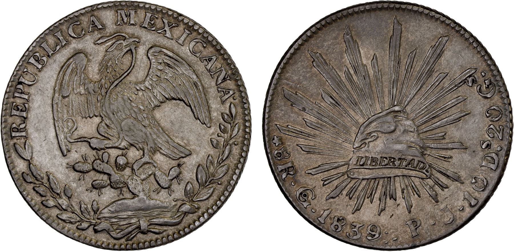 MEXICO: Republic, AR 8 reales (26.58g), Guanajuato, 1839/8-Go, XF
