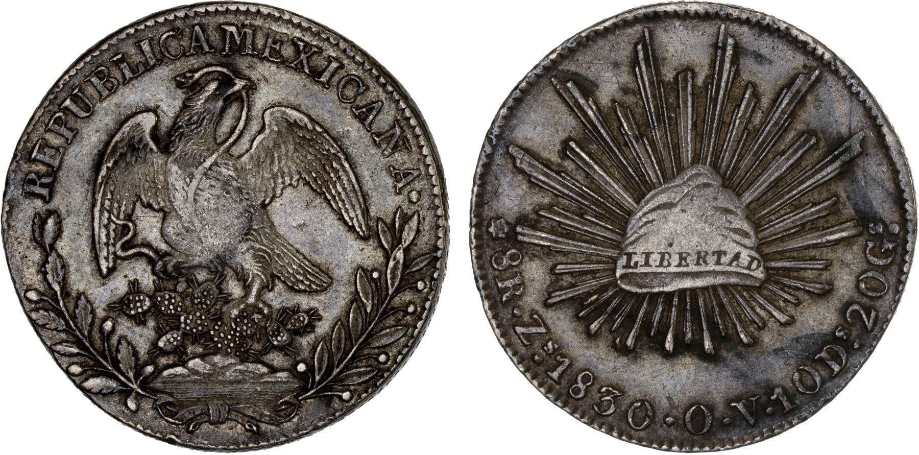 MEXICO: Republic, AR 8 reales (26.59g), 1830-Zs, KM-377.13, assayer OV, light reverse oxidation, somewhat scarce date/mintmark/assayer, VF-XF, ex Bob "Swamperbob" Gurney Collection.