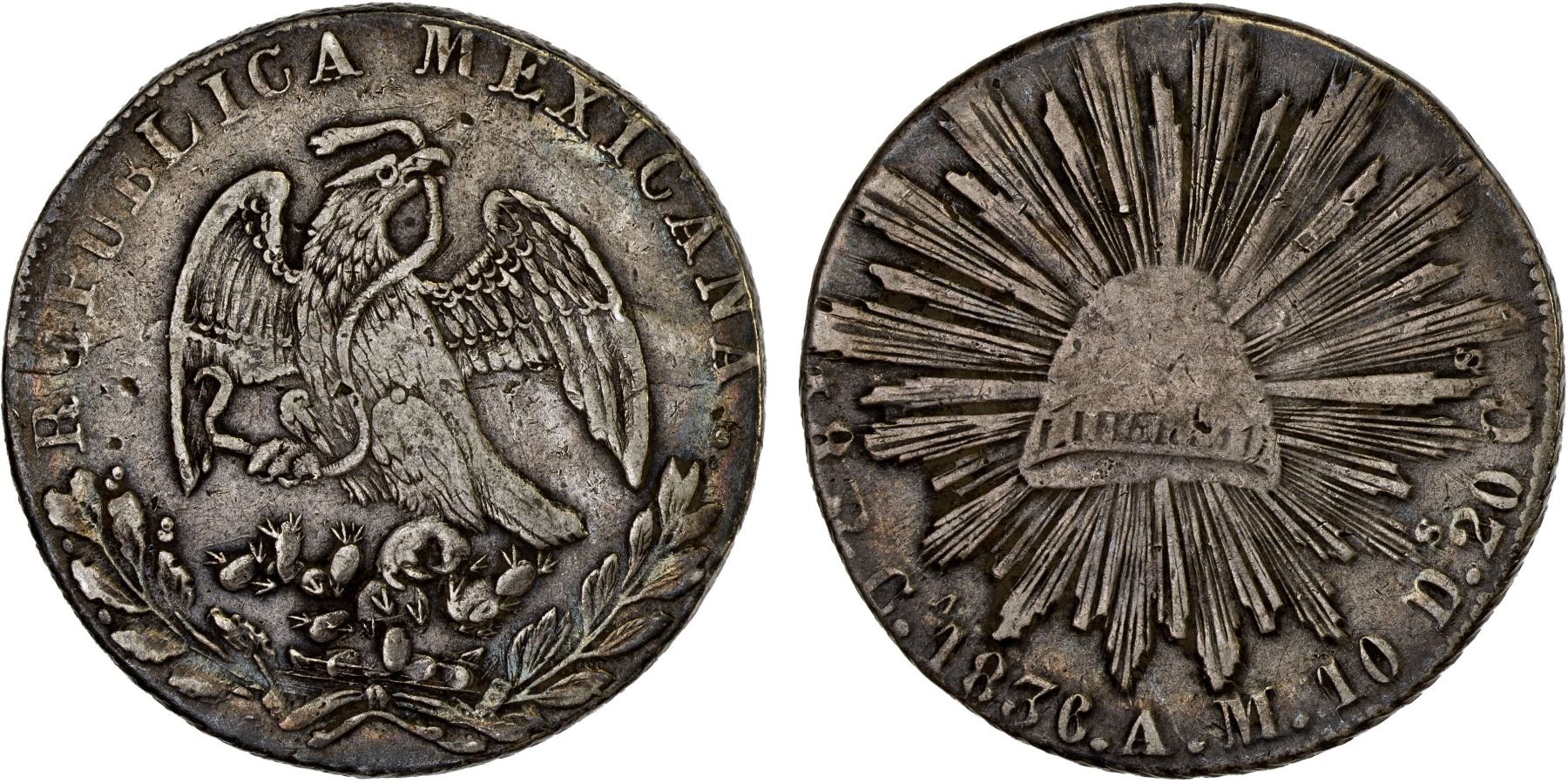 MEXICO: Republic, AR 8 reales (26.68g), Chihuahua, 1836-Ca, KM-377.2, D&P-Ca07, assayer AM, a few obverse contact marks, very scarce date/assayer, F-VF, ex Bob "Swamperbob" Gurney Collection.
