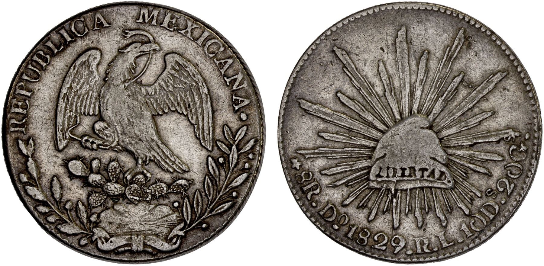 MEXICO: Republic, AR 8 reales (26.70g), Durango, 1829-Do, KM-377.4, D&P-Do06, assayer RL, standard cactus and rays, somewhat crude, scarce date/assayer, VF, ex Bob "Swamperbob" Gurney Collection.