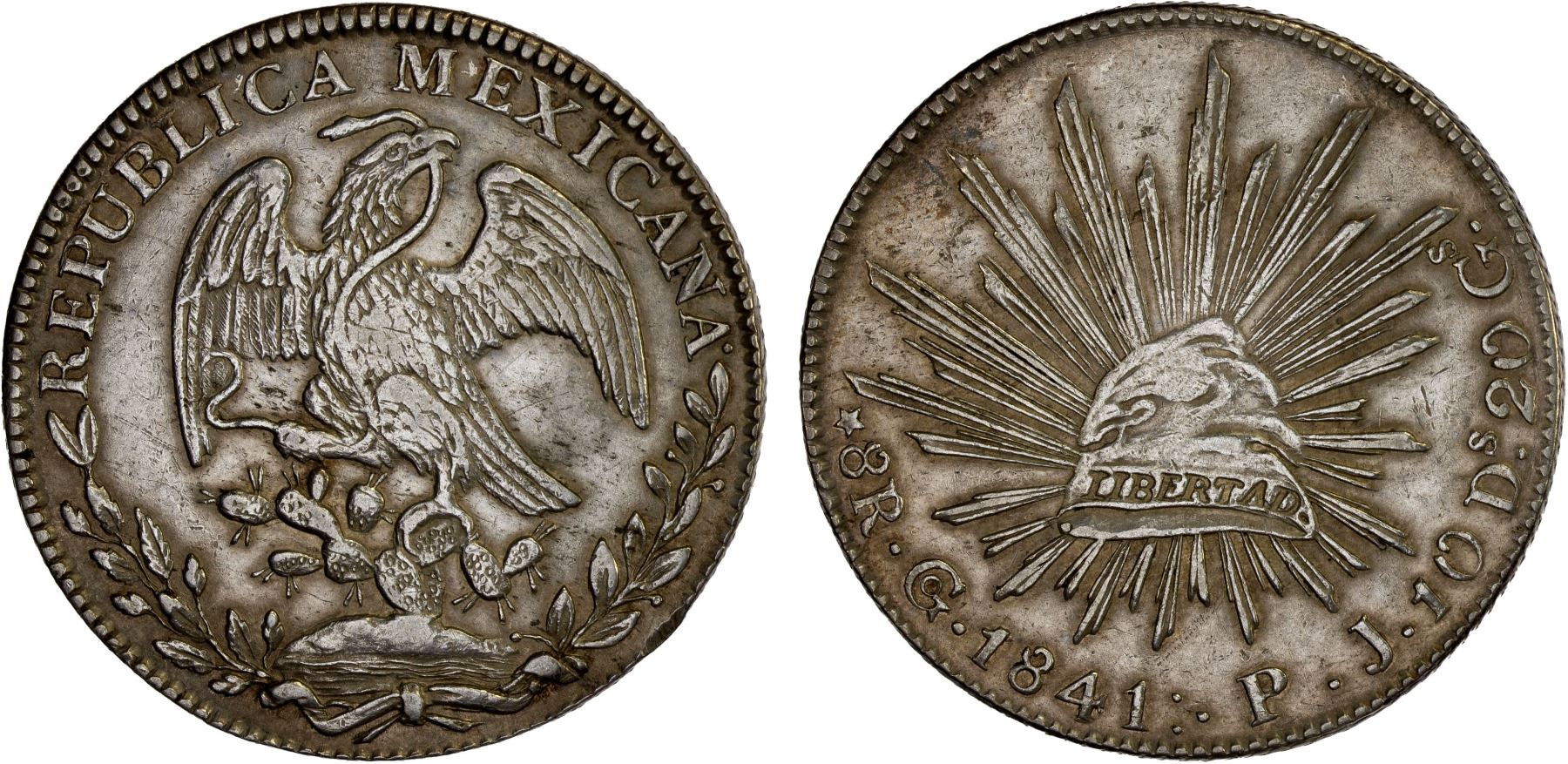 MEXICO: Republic, AR 8 reales (26.77g), Guanajuato, 1841-Go, KM-377.8, D&P-Go23, assayer PJ, several numbers and letters double-punched in date legend, lightly toned, XF, ex Bob "Swamperbob" Gurney Collection.