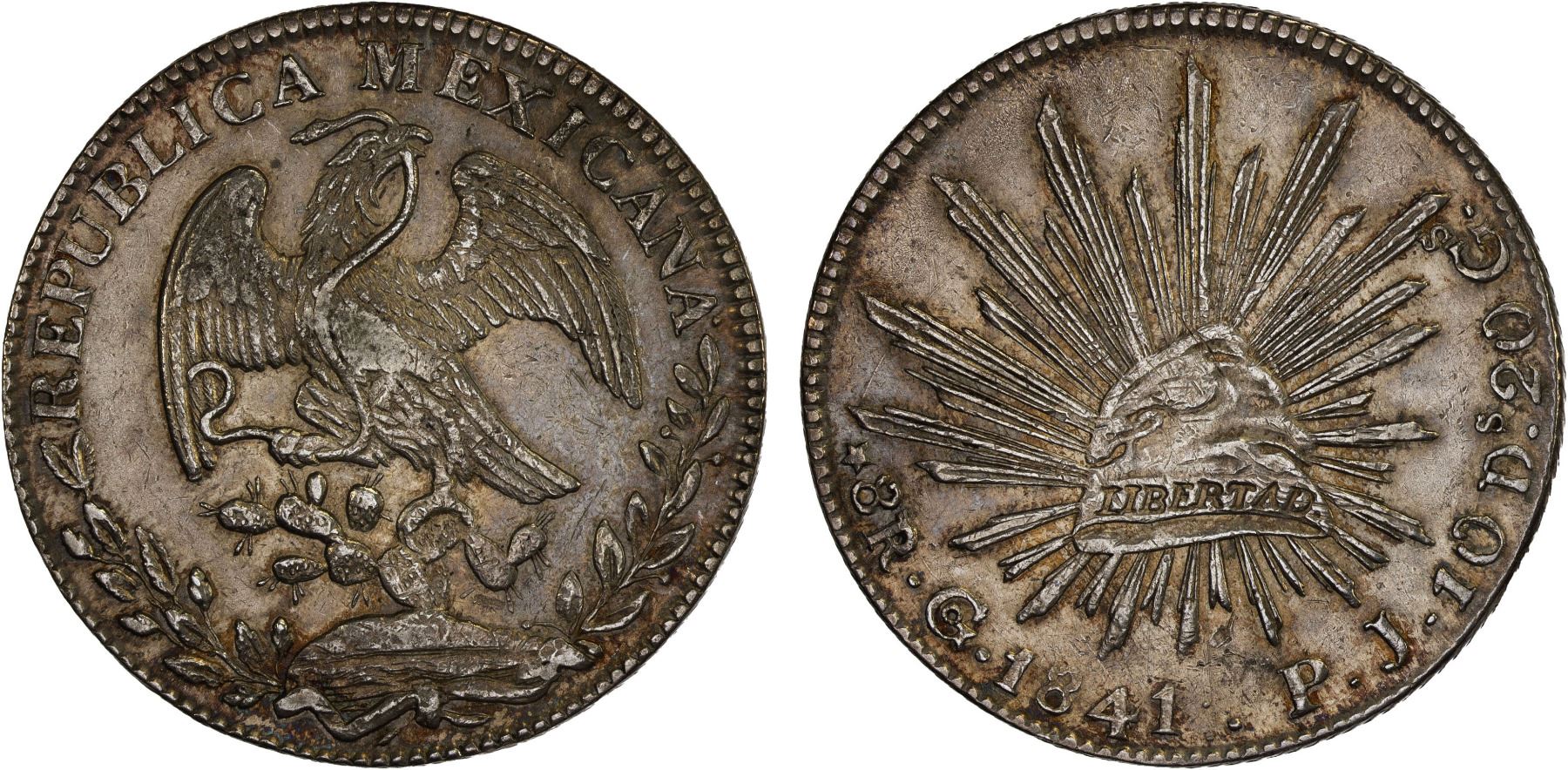 MEXICO: Republic, AR 8 reales (26.82g), Guanajuato, 1841-Go, XF-AU