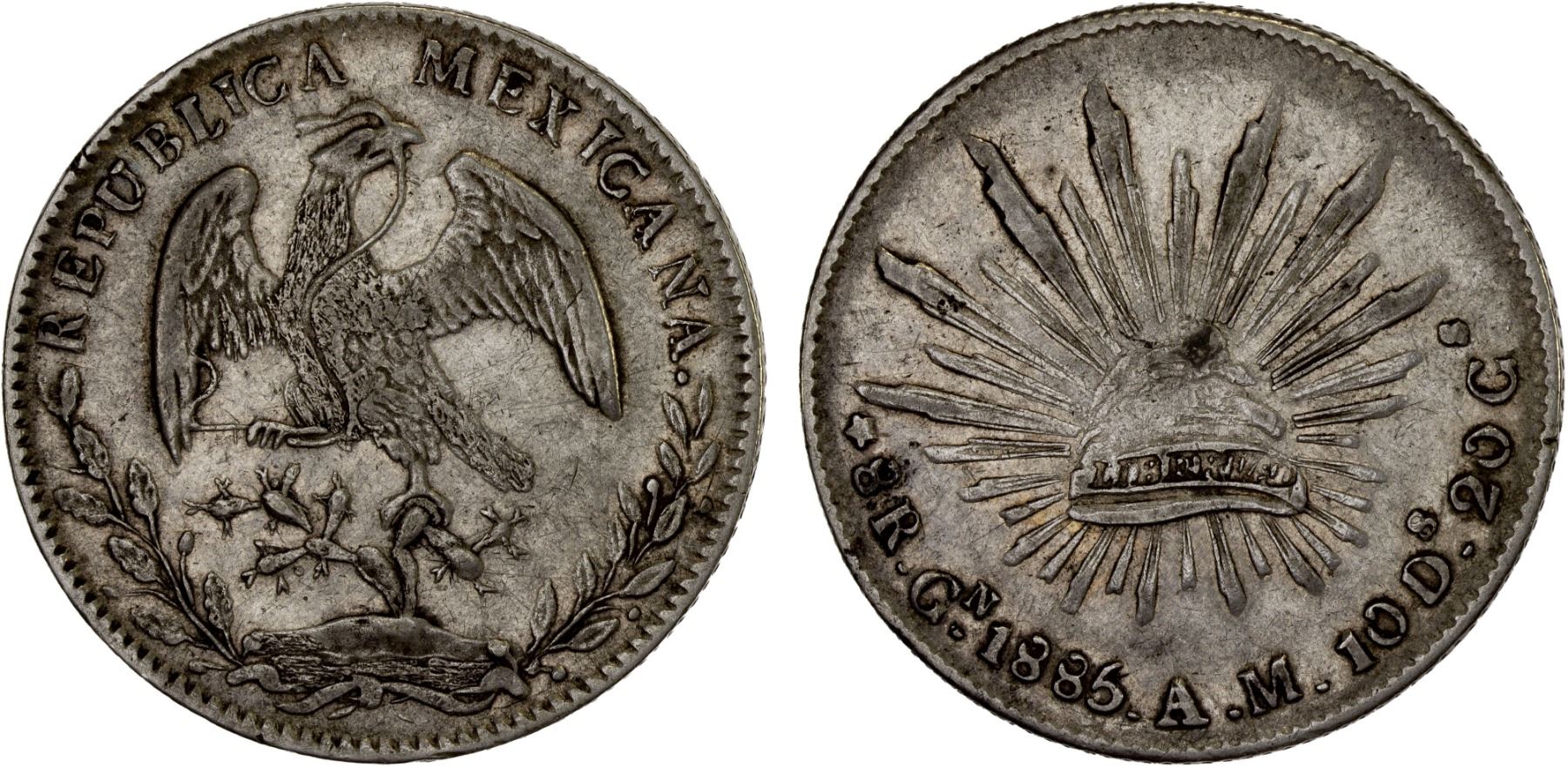 MEXICO: Republic, AR 8 reales (26.85g), 1885-Cn, Choice VF