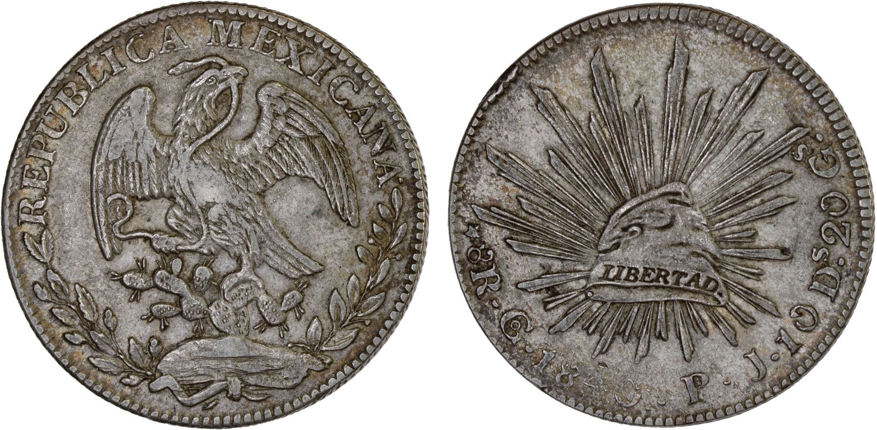 MEXICO: Republic, AR 8 reales (26.89g), Guanajuato, 1840/30-Go, KM-377.8, D&P-Go22, assayer PJ, reverse rim bump, VF-XF, ex Bob "Swamperbob" Gurney Collection.