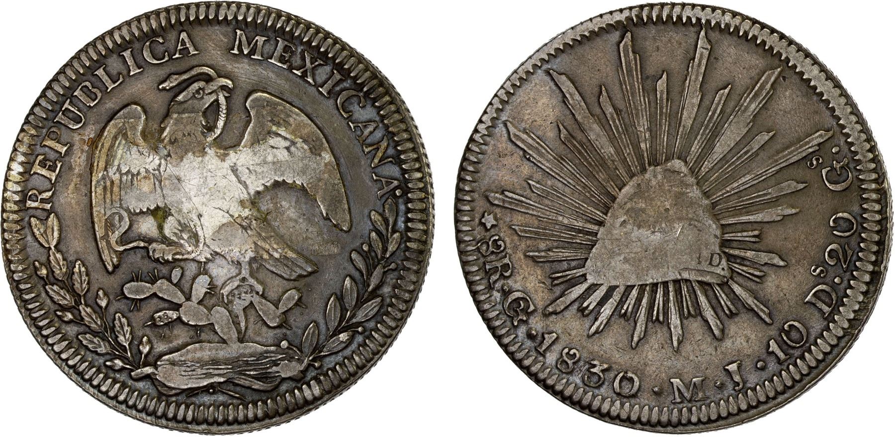 MEXICO: Republic, AR 8 reales (26.90g), 1830-Go, KM-377.8, D&P-Go11, assayer MJ, die style of 1829-30, toned, except for some of eagle, somewhat soft centers, F-VF, ex Bob "Swamperbob" Gurney Collection.