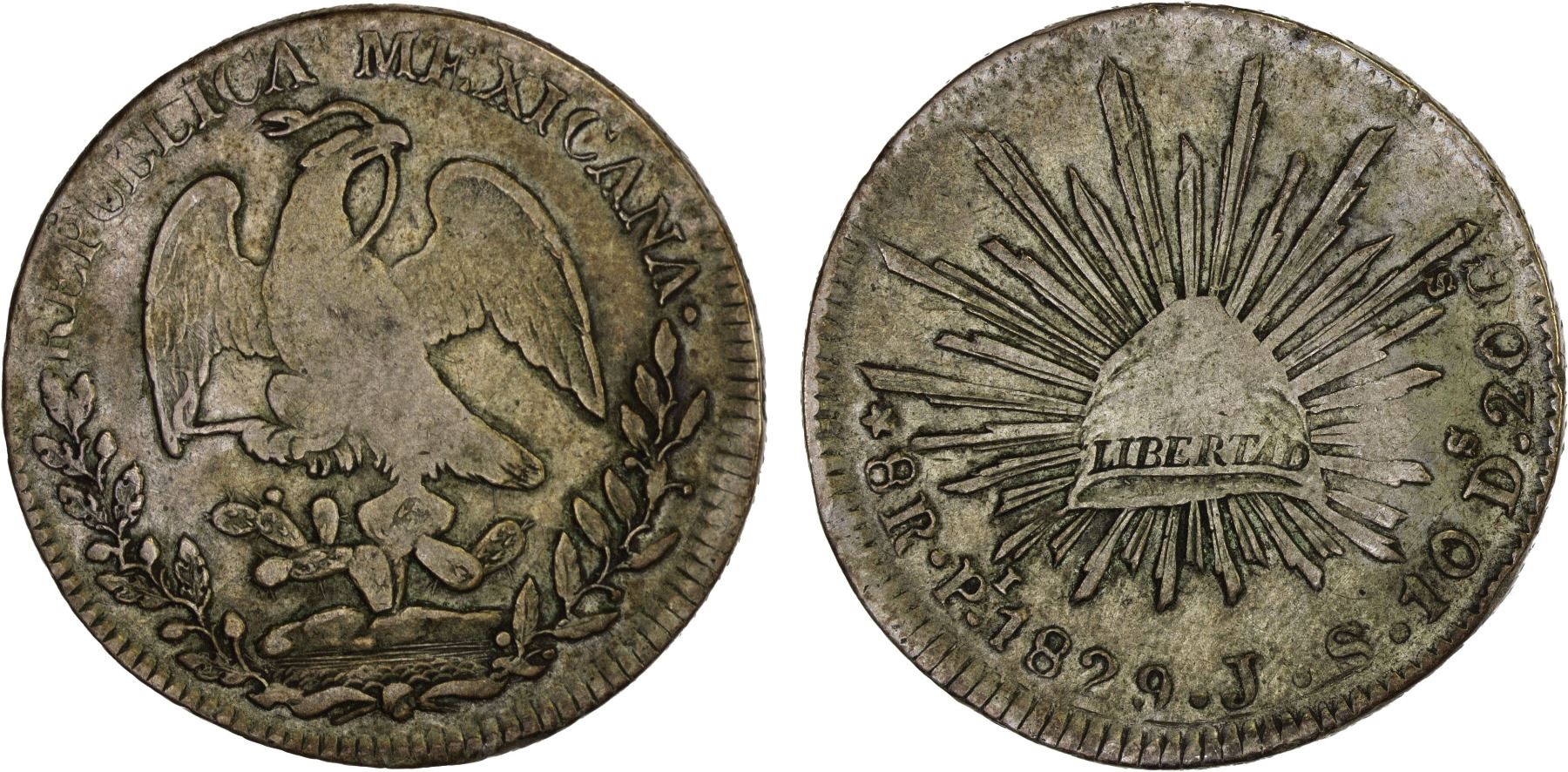 MEXICO: Republic, AR 8 reales (26.90g), San Luis Potosi, 1829-Pi, KM-377.12, D&P-Pi04, assayer JS, uneven obverse strike, scarce date/assayer, VF, ex Bob "Swamperbob" Gurney Collection.