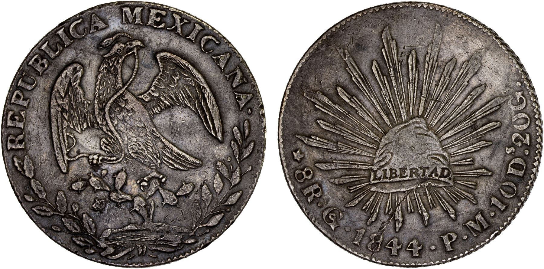 MEXICO: Republic, AR 8 reales (26.91g), Guanajuato, 1844-Go, VF-XF