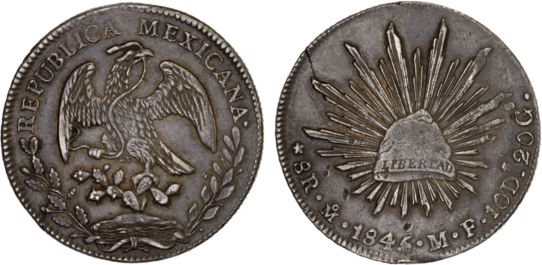 MEXICO: Republic, AR 8 reales (26.93g), Mexico City, 1845-Mo, XF