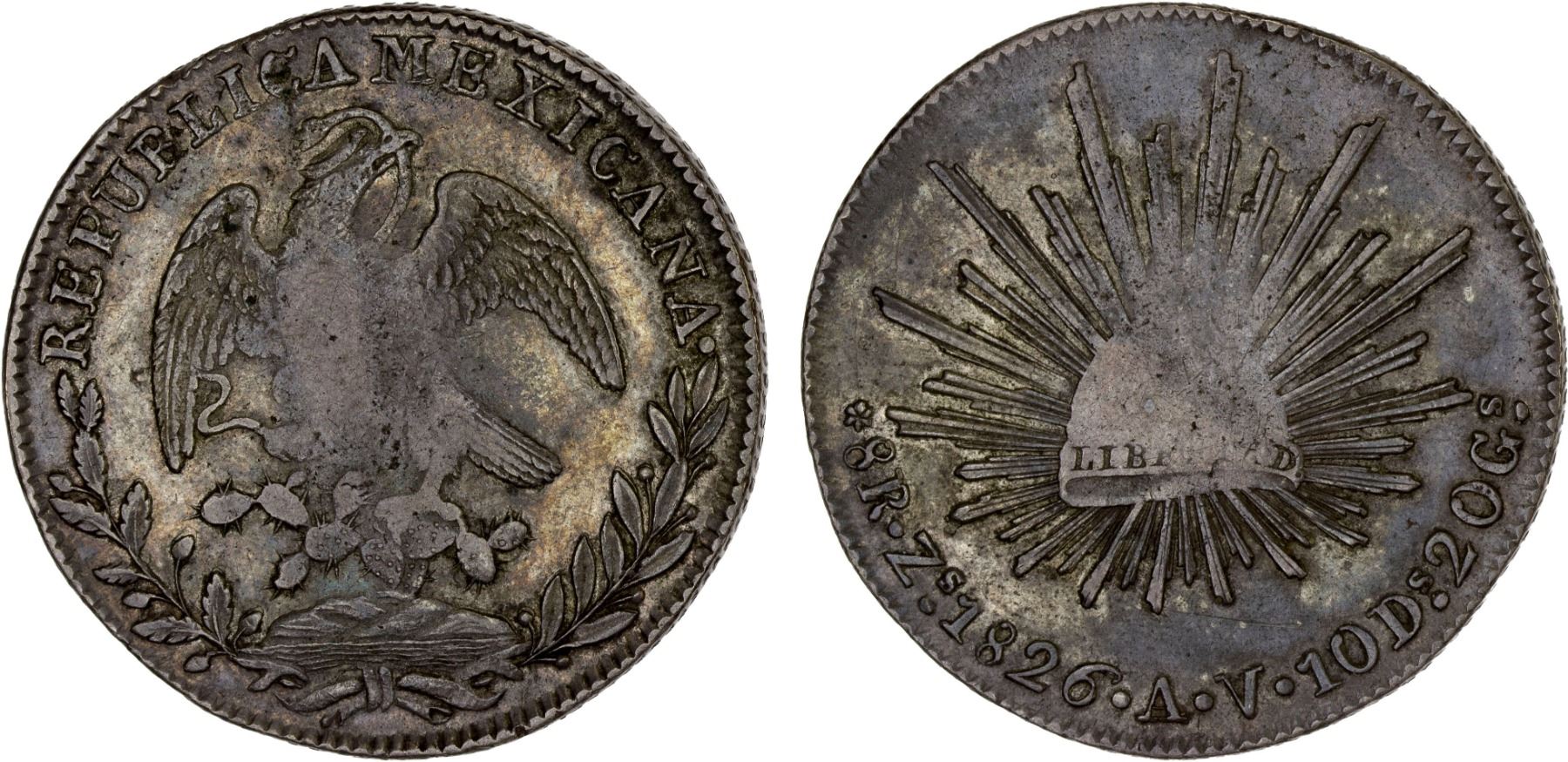 MEXICO: Republic, AR 8 reales (26.97g), 1826-Zs, KM-377.13, assayer AV, weak centers, toned, rare date/mintmark/assayer, Choice VF, ex Bob "Swamperbob" Gurney Collection.