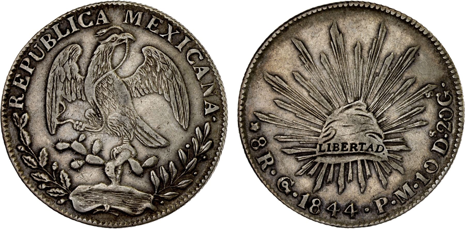 MEXICO: Republic, AR 8 reales (26.98g), Guanajuato, 1844-Go, Choice VF