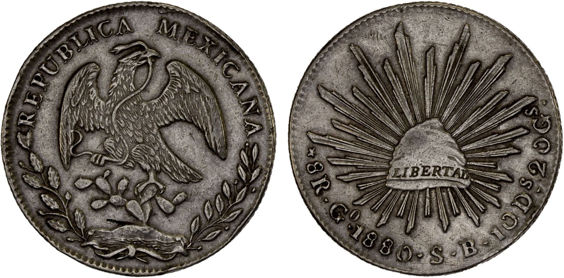 MEXICO: Republic, AR 8 reales (26.99g), 1880-Go, KM-377.8, assayer SB, small obverse flan flaw, Choice VF, ex Bob "Swamperbob" Gurney Collection.