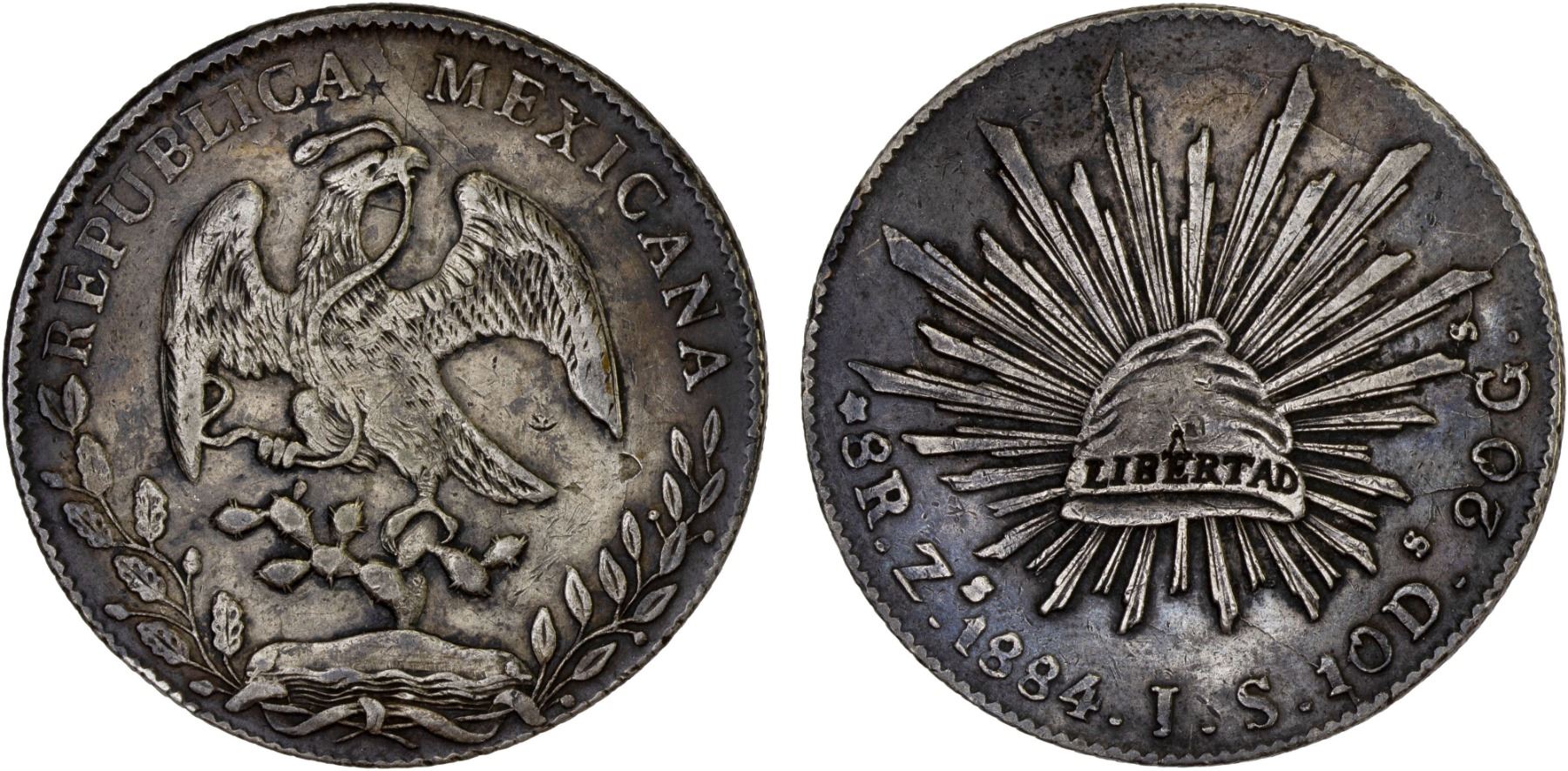 MEXICO: Republic, AR 8 reales (26.99g), 1884-Zs, VF