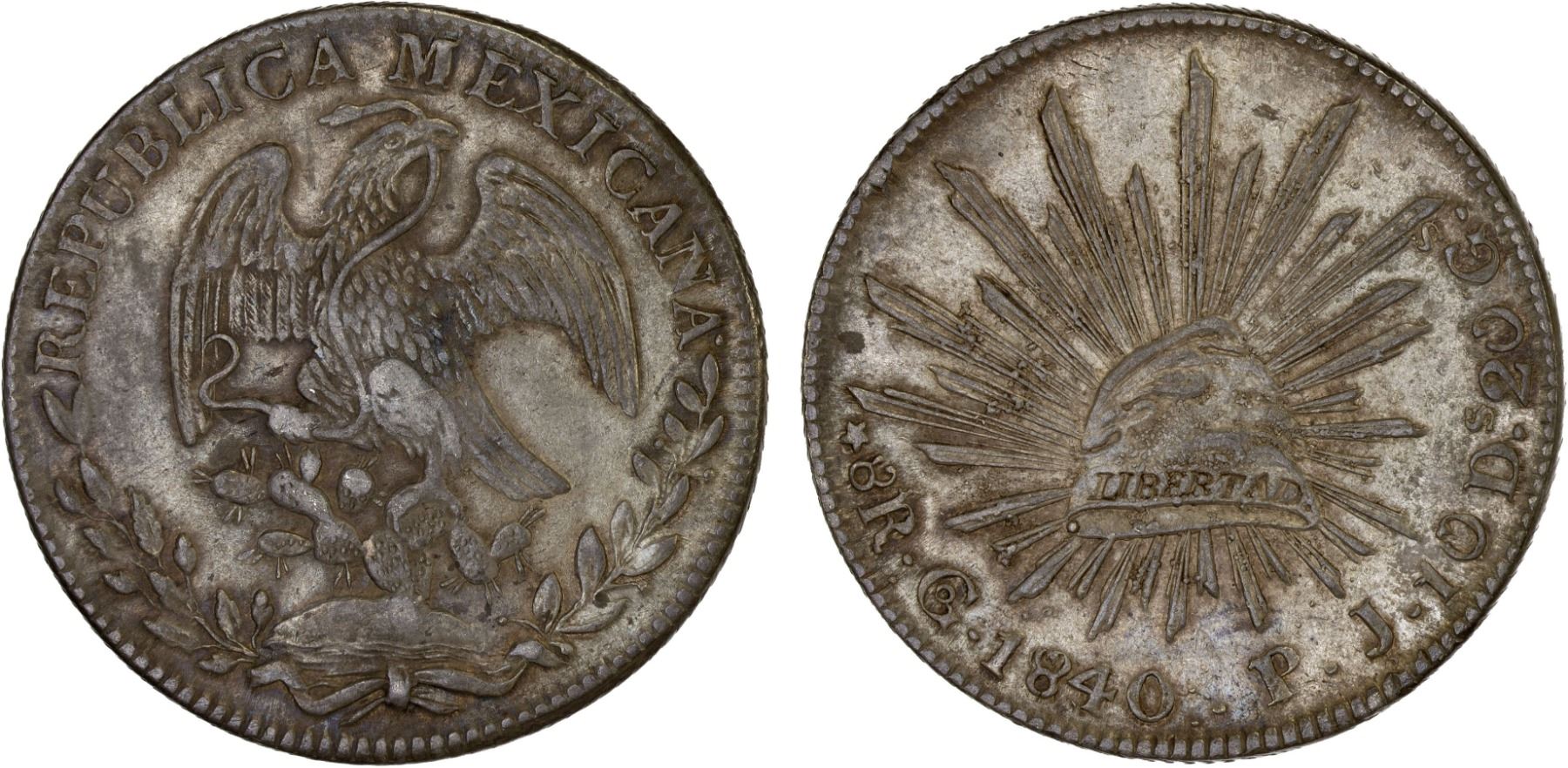 MEXICO: Republic, AR 8 reales (27.03g), Guanajuato, 1840/30-Go, KM-377.8, D&P-Go22, assayer PJ, lightly toned, reverse die rust, XF, ex Bob "Swamperbob" Gurney Collection.