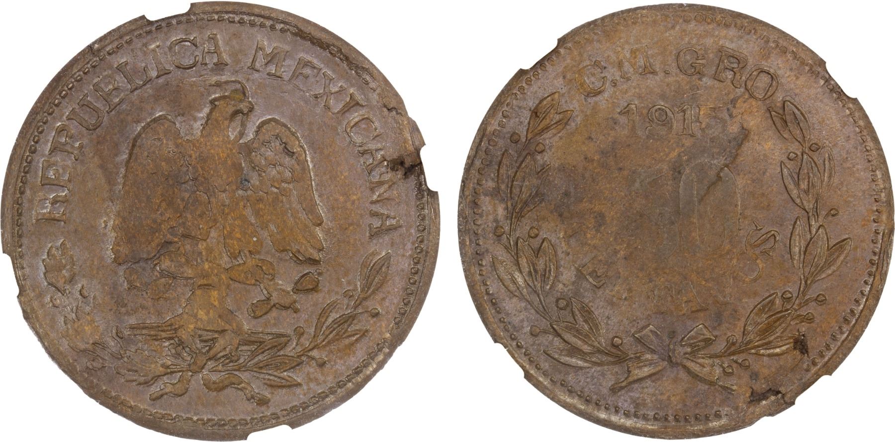 MEXICO: Revolutionary Issue, AE 10 centavos, Campo Morado, Guerrero, 1915-GRO, NGC MS62 BN
