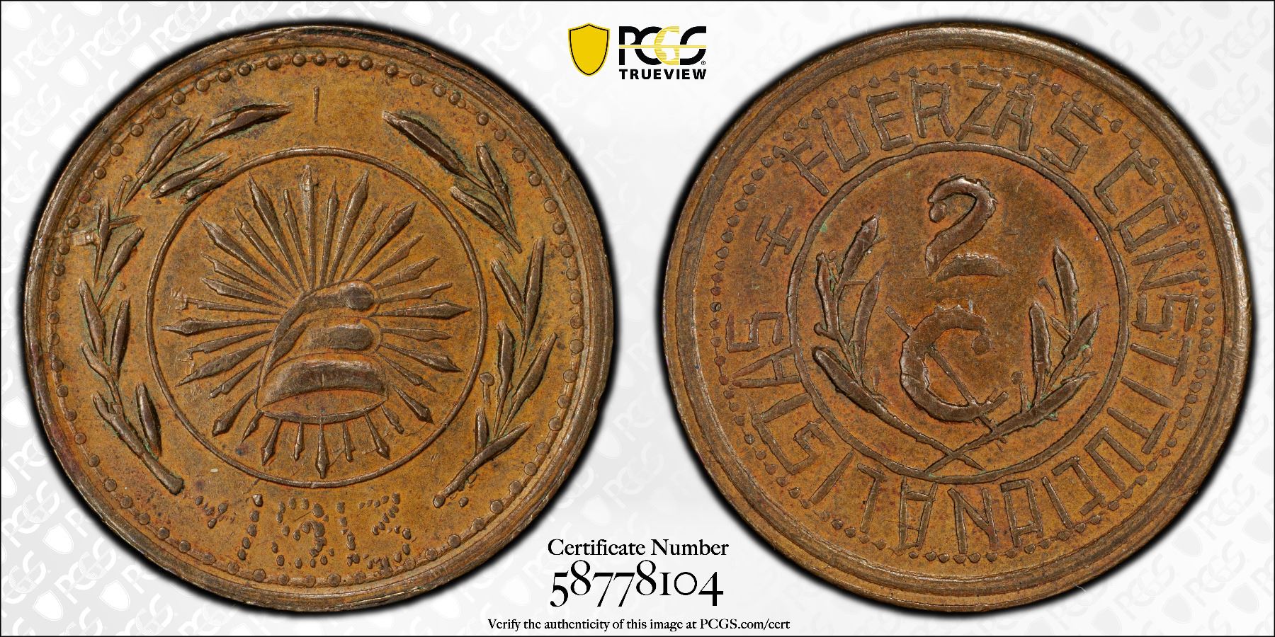 MEXICO: Revolutionary Issue, AE 2 centavos, Hidalgo del Parral, Chihuahua, 1913, PCGS AU58