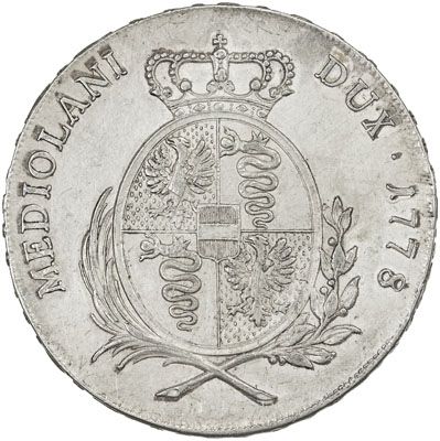 MILAN: Maria Theresa, 1740-1780, AR scudo (6 lire) (23.02g), 1778, KM-38, Dav-1386, choice EF.
