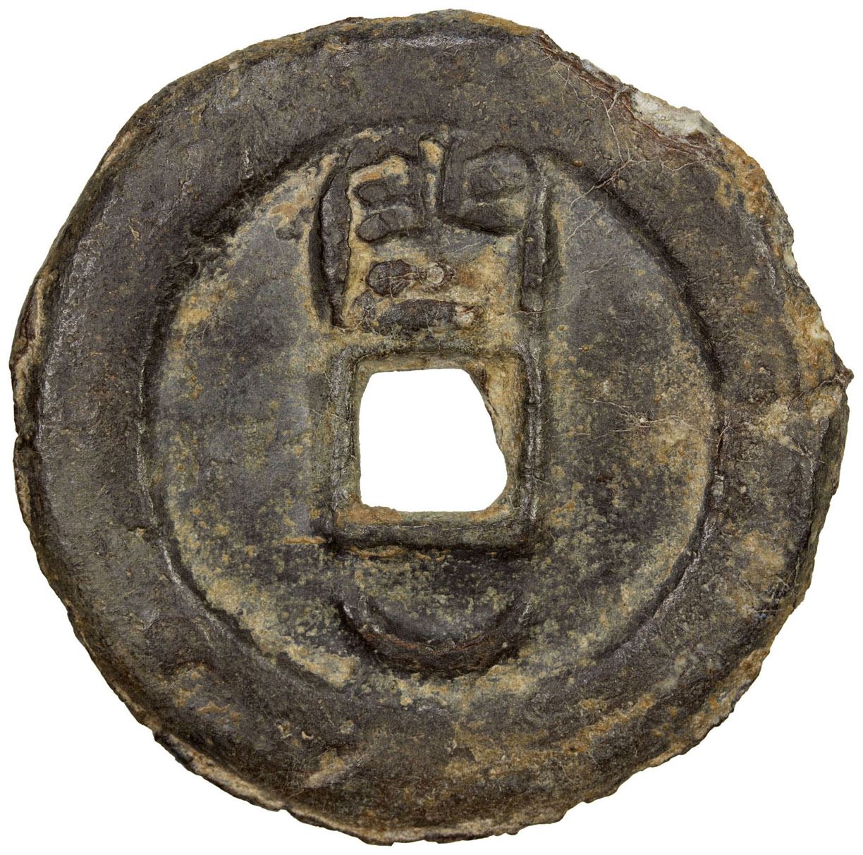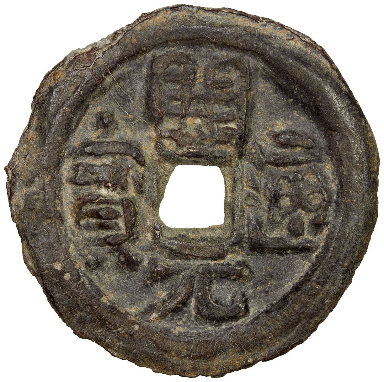 MIN: Wang Shenzhi, 909-945, lead large cash (29.28g), H-15.51, kai yuan tong bao on obverse, min above, crescent below, for use in the Fujian area, an exceptional quality example! EF.   Min was one of the 'Ten Kingdoms' and it existed in a mountainous region of modern-day Fujian province of China and had a history of quasi-independent rule with its capital at Fuzhou. It was founded by Wang Shenzhi. His father was given the title of Surveillance Commissioner in 892. Wang Shenzhi himself was named military commissioner. In 909, in the wake of the collapse of the Tang Dynasty two years earlier, he named himself the Prince of Min. Wang Shenzhi's son declared himself the Emperor of Min in 933. At that point, his father was posthumously named Min Taizu. The capital of the Min Kingdom was then known as Changle, the present day Fuzhou. The kingdom was essentially limited to modern-day Fujian Province in China's southeast. The Kingdom of Min was conquered by the Southern Tang Kingdom in 945 AD.