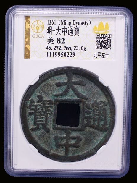 MING: Da Zhong, 1361-1368, AE 10 cash (16.1g), Beiping (Beijing), H-20.49, bei ping above and shi to left on reverse, bold casting, light green patina, graded 82 by GBCA Grading Company, Choice VF.