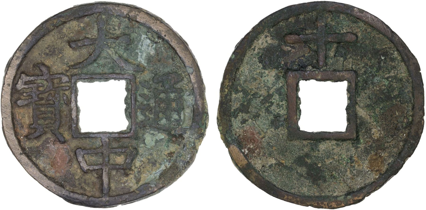 MING: Da Zhong, 1361-1368, AE 10 cash (19.6g), H-20.45, shi (ten) above on reverse, graded 80(03) by GBCA Grading Company, repaired, VF. The first cash coins issued by Zhu Yuanzhang actually bore the inscription "Dazhong Tongbao" because he wanted to name his country the "Great Zhong" dynasty, but eventually the name settled on was the "Great Ming" dynasty. The Hongwu period was proclaimed in 1368 and the introduction of the Hongwu Tongbao coins began then. Despite the new coinage being issued the "Dazhong Tongbao" coins would continue to be cast as reconquering China from the Mongols took several more years.