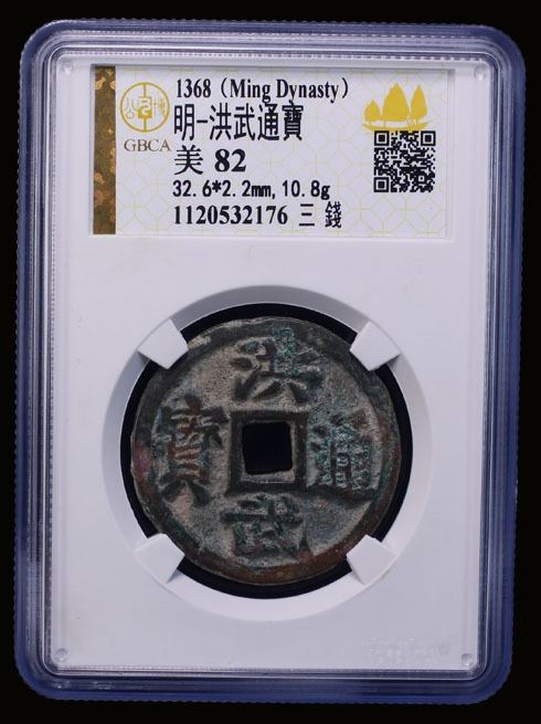 MING: Hong Wu, 1368-1398, AE 3 cash (10.8g), H-20.87, san qian at right on reverse, graded 82 by GBCA Grading Company, VF.