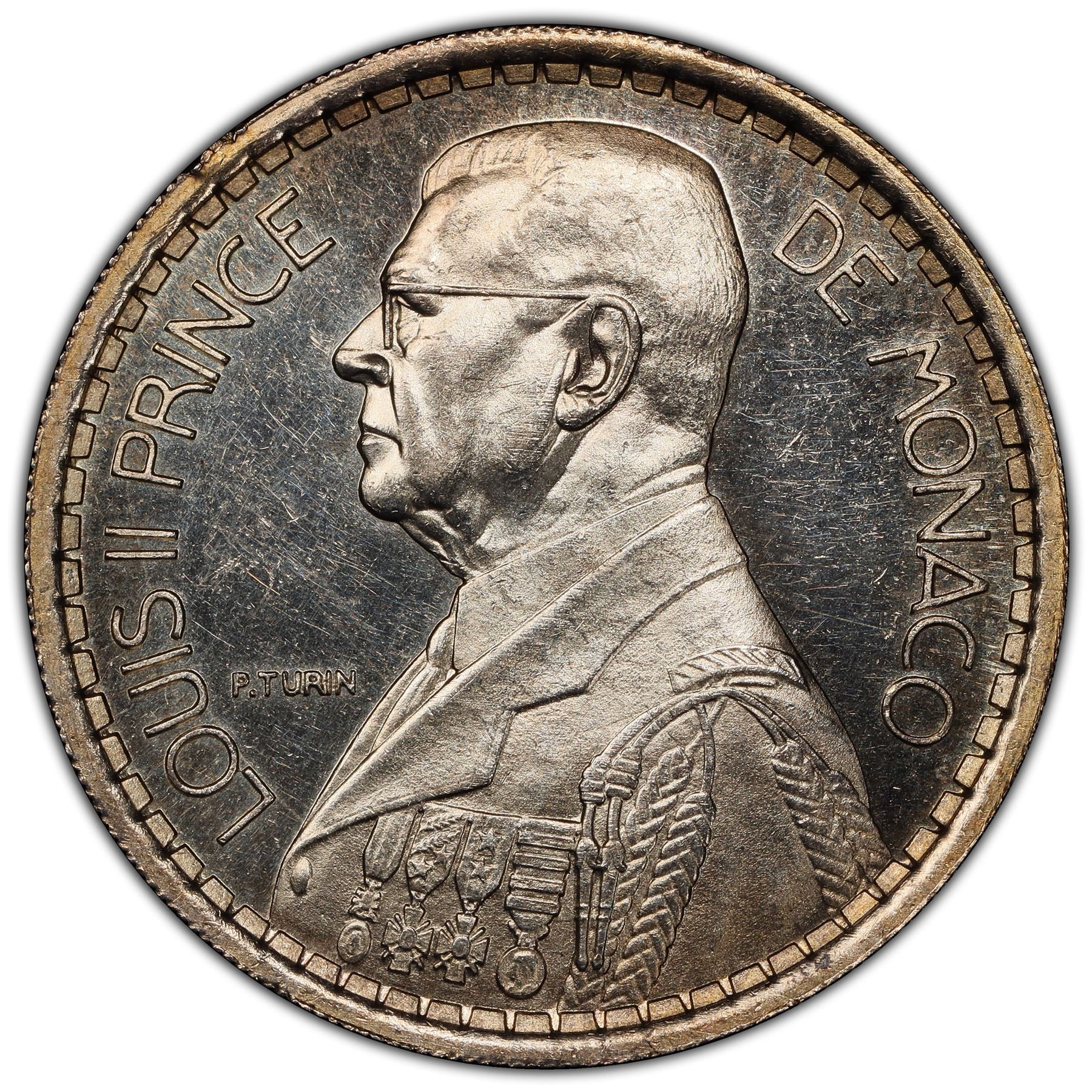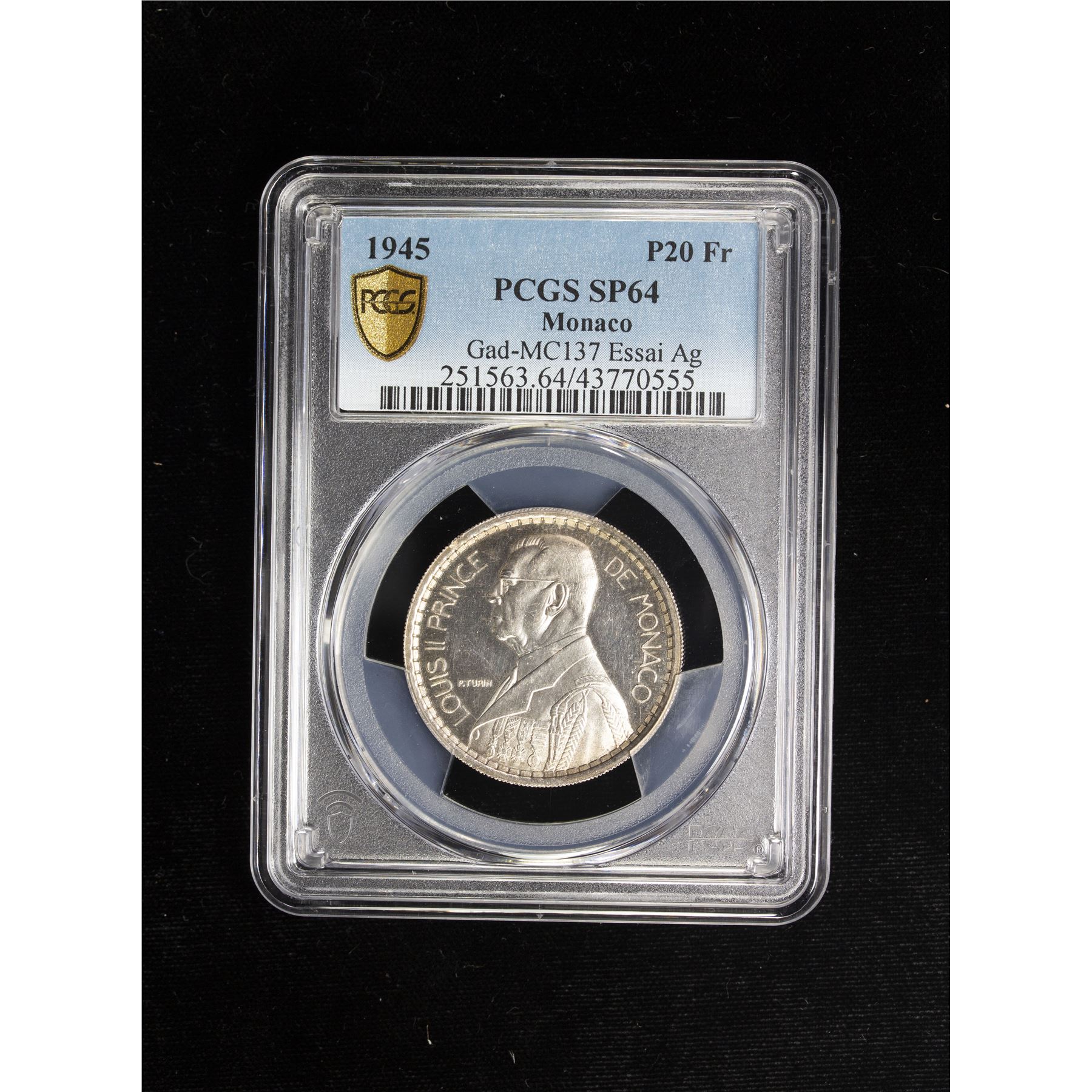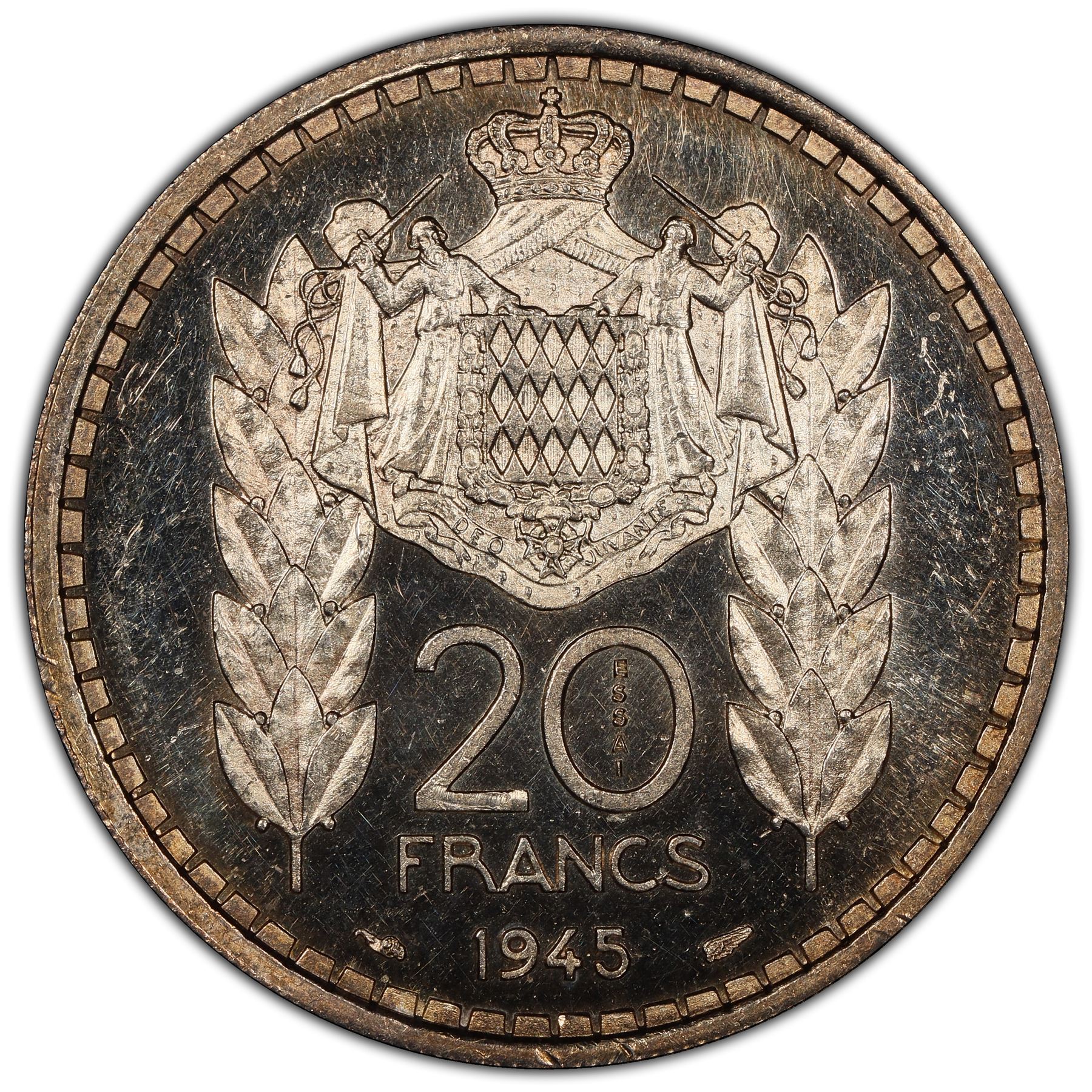 MONACO: Louis II, 1922-1949, AR 20 francs, 1945, PCGS Specimen 64